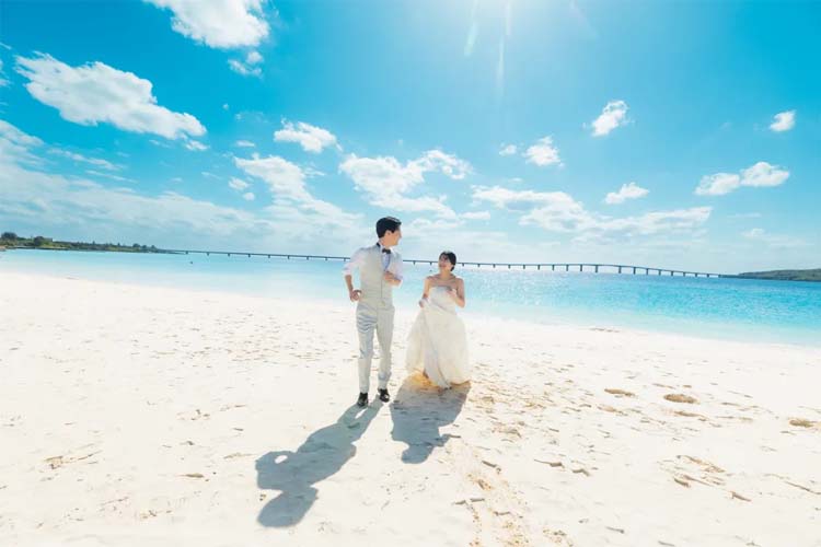 美しいリゾート風景をバックに、ウェディングフォト撮影の1日をお楽しみください。