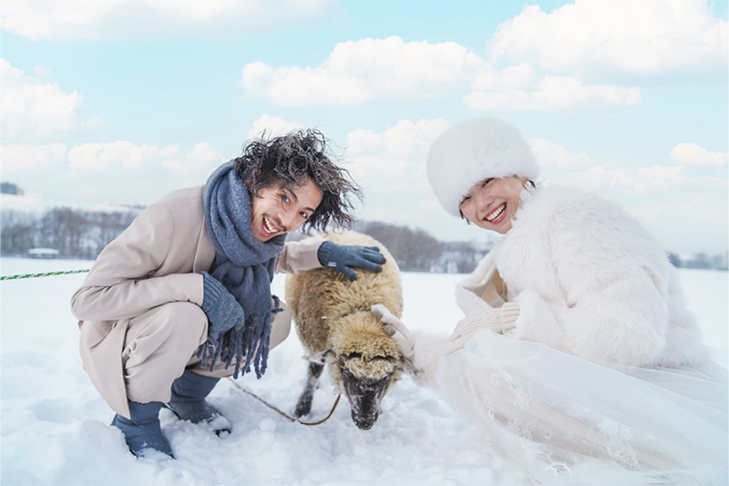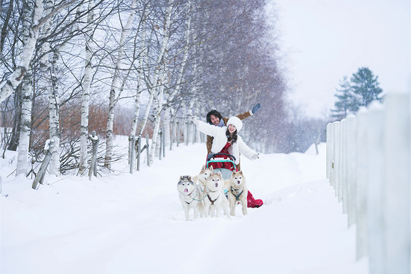 純白のパノラマを独り占め「丘のまち」として知られる美瑛。冬になると一面の銀世界が広がります。大自然の幻想的な空間で、映画のワンシーンのような撮影が叶います!さらに美瑛では、犬ぞり体験や馬と一緒に撮影できる特別なプランもご用意。北海道ならではの貴重な体験をお楽しみください。