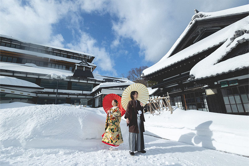 雪ロケーション撮影は、例年12月下旬から2月下旬頃まで可能です。3月は雪解けがはじまるので、積雪がしっかりとあって写真映えする1月~2月がベストシーズン。