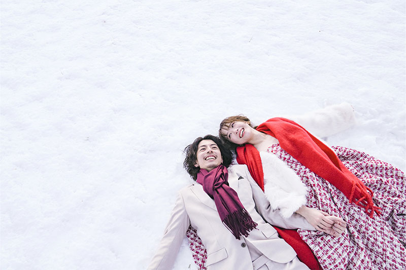 雪ロケーション撮影は、例年12月下旬から2月下旬頃まで可能です。3月は雪解けがはじまるので、積雪がしっかりとあって写真映えする1月~2月がベストシーズン。