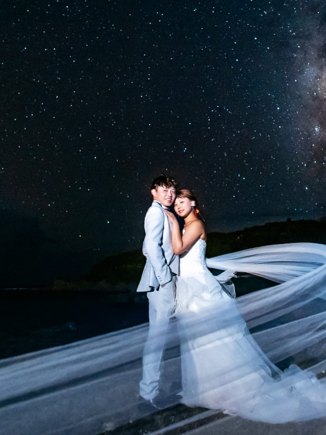 冬の夜空に、無数の星が現れる地上には、ふたりだけベールを揺らす夜風の音静寂の中で交わす誓いこの瞬間が、永遠になる