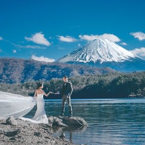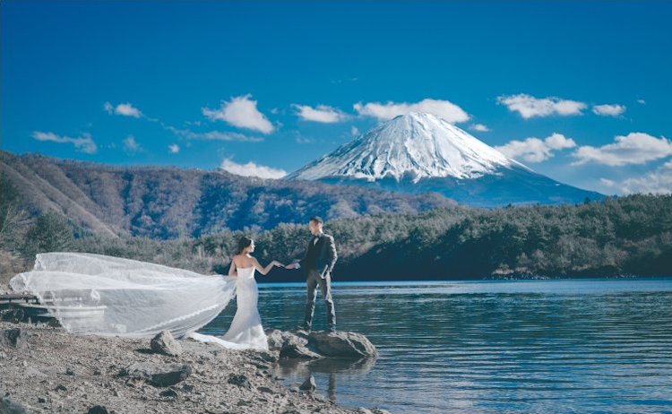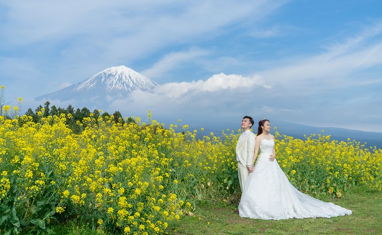 富士山の見える日数が最も多いこの時期がベストシーズン。日本を象徴する風景で残す婚礼写真です。