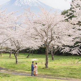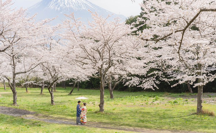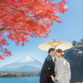 富士山は日本の象徴ともいえる存在。その雄大な姿を背景に、絵画のような一枚を撮影できます。雪化粧の冬、桜と共演する春、紅葉が真っ赤に映える秋。季節ごとに表情を変え、他のロケーションにはない特別な魅力があります。