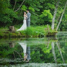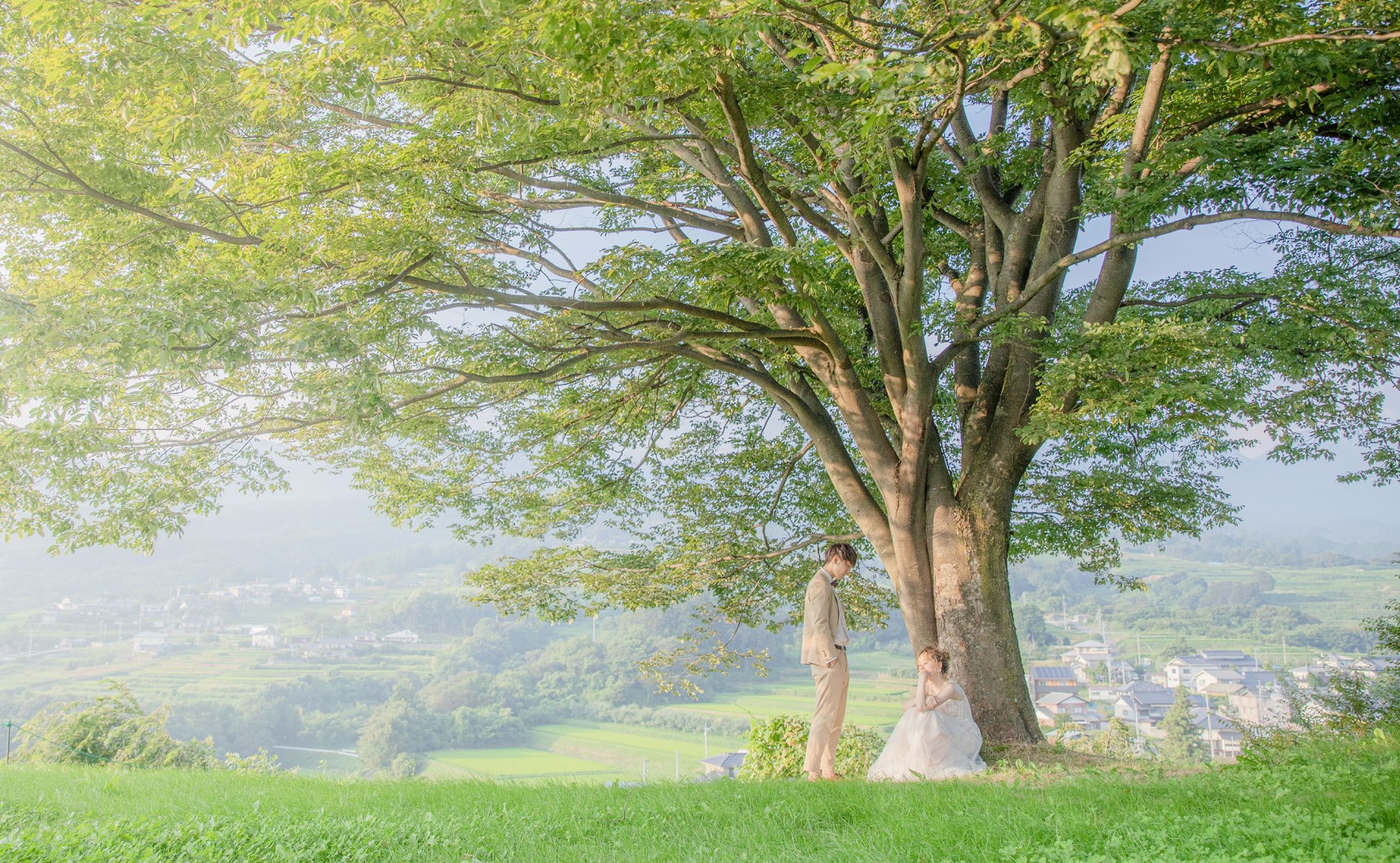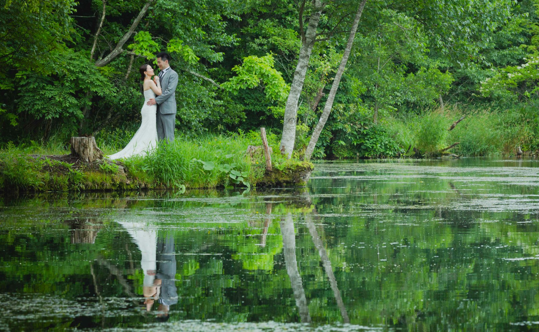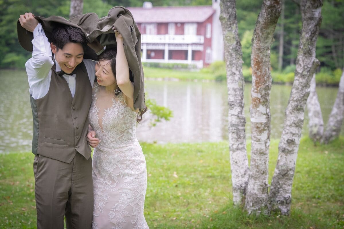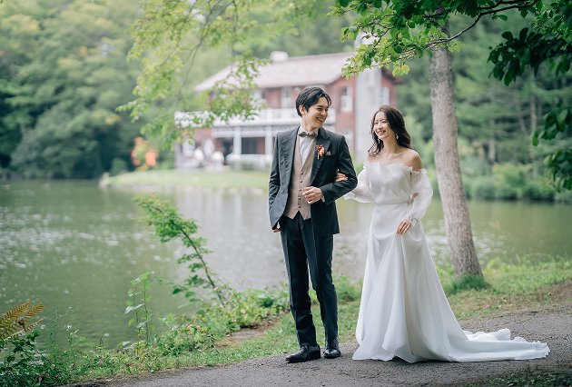 東京から新幹線で約1時間。新緑のきらめく爽やかな湖畔でナチュラルテイストのウェディングフォト。