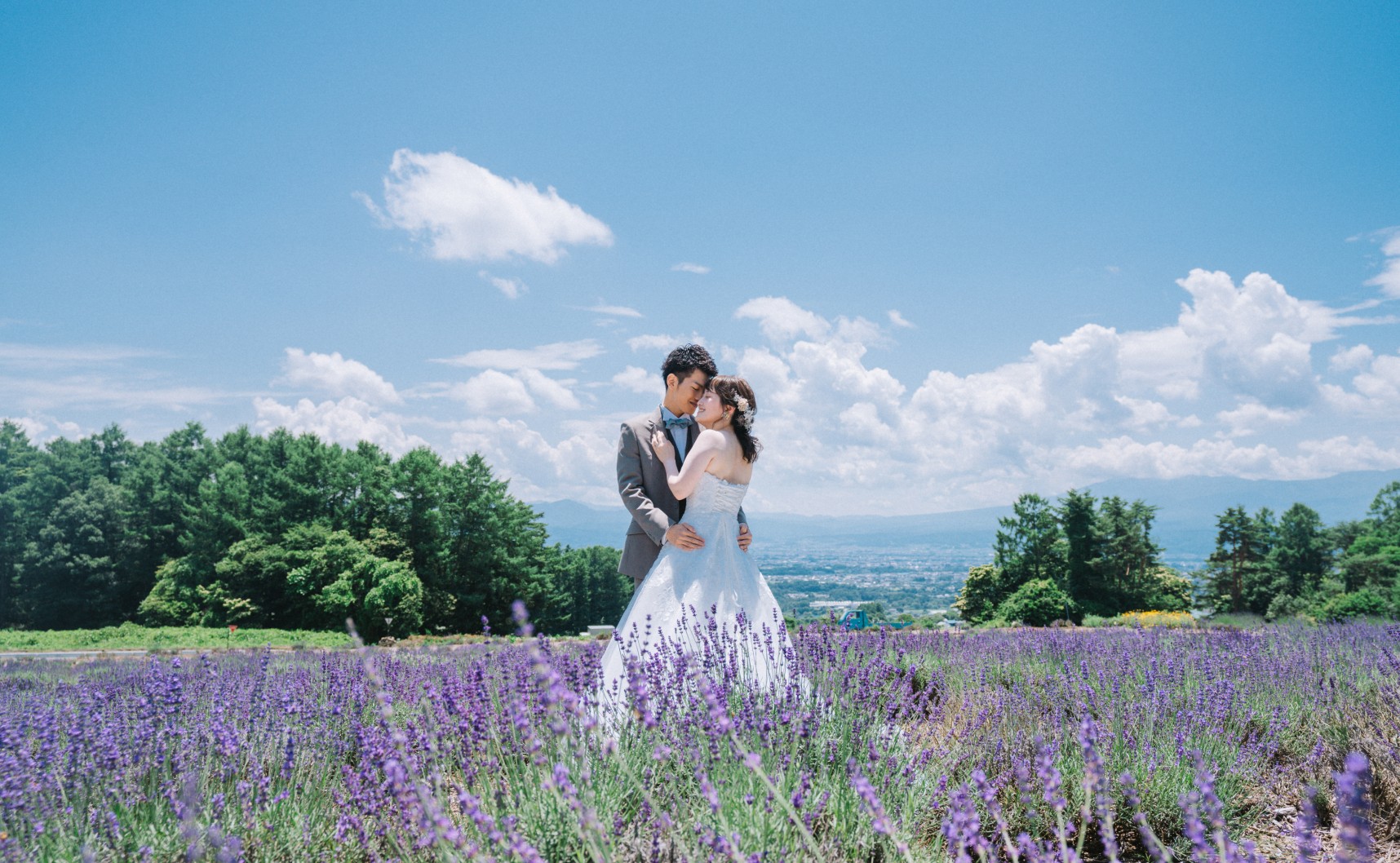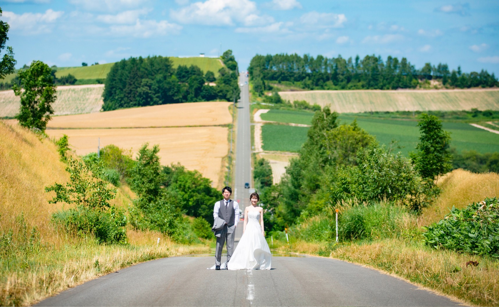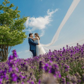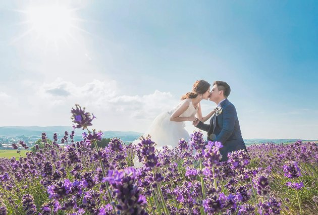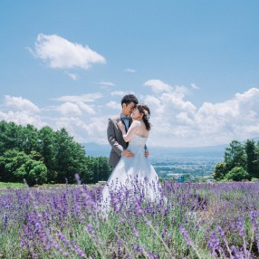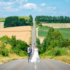 ラベンダー畑やひまわり畑など、雄大な景色が広がる北海道で叶える特別な一枚。
