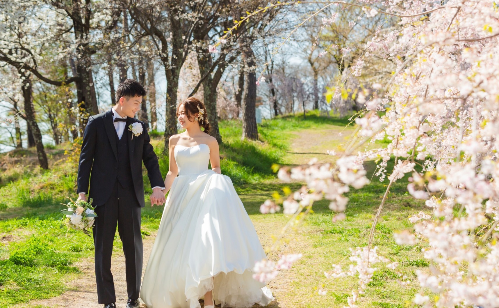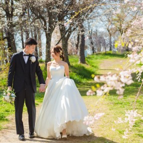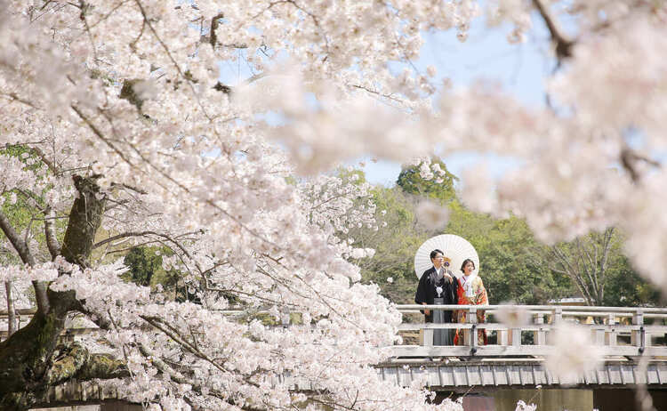 東京から新幹線で約1時間。満開の桜に包まれて、洋装&和装の撮影が1日で叶います。