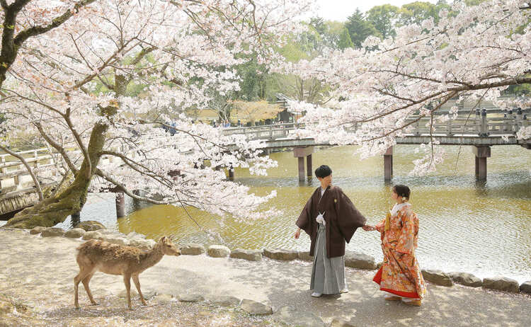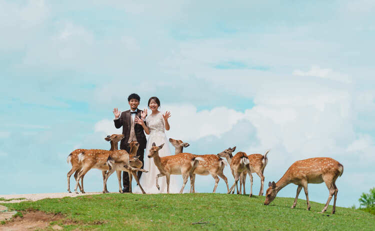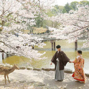 古都ならではの歴史情緒と季節ごとの自然の美しさが魅力の京都・奈良。「祇園」や「八坂の塔」をはじめとした由緒あるスポットでの撮影や、「奈良公園」のシカと一緒に楽しむウェディングフォトまで多彩なロケーションをご紹介いたします。