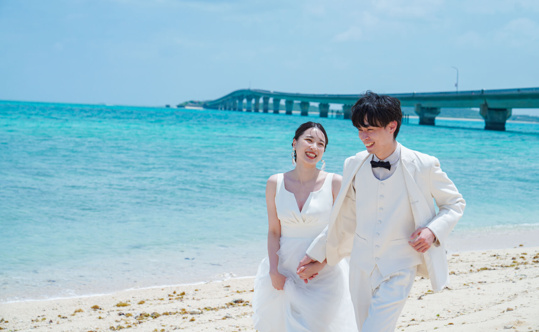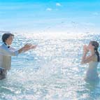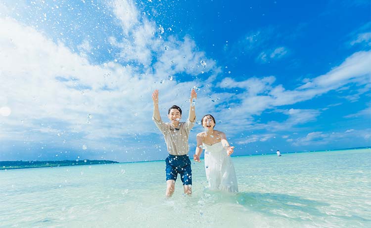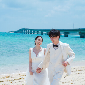 透明度の高い海、白く輝く砂浜といった誰もが憧れるビーチリゾート。開放感あふれるビーチフォトはもちろん、沖縄ならではの観光地での撮影も人気です。ドレスごと海へダイブしたり、ドローンで撮影したり、ふたりが思いっきり楽しめて笑顔いっぱいのリゾートウェディングフォトを残すなら沖縄へ。