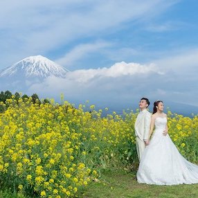 2月に咲く河津桜や、菜の花畑や伊豆の海など、色彩豊かなフォトウェディングをお楽しみください。