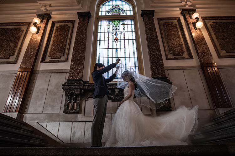 時代に左右されない「正統派の婚礼写真」を撮影します。背景がシンプルだからこそ、お二人の表情や衣装の美しさが際立つ一枚に仕上がります。