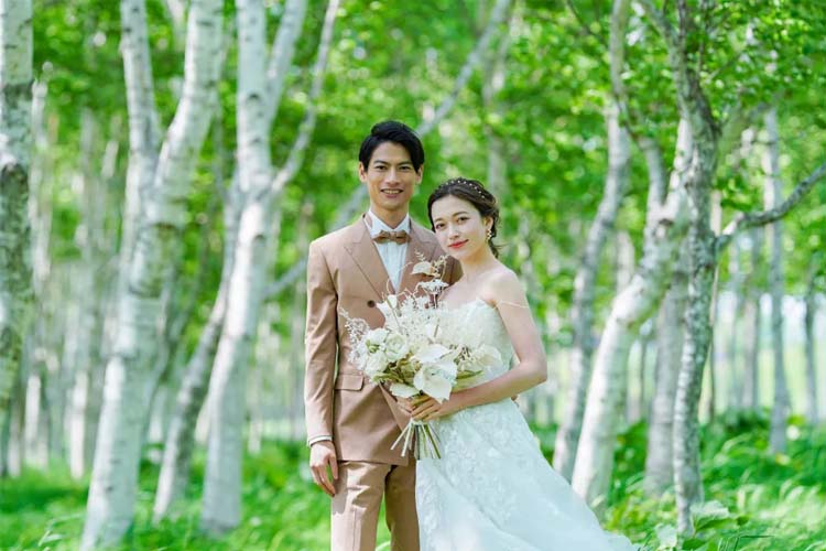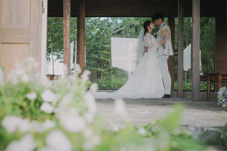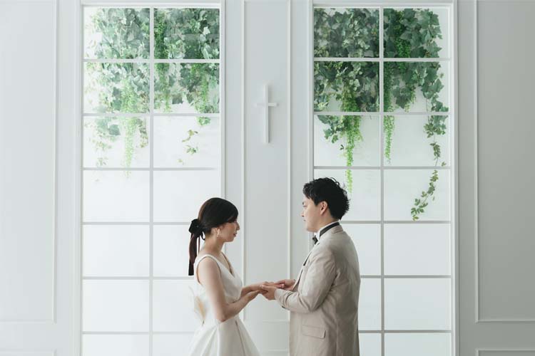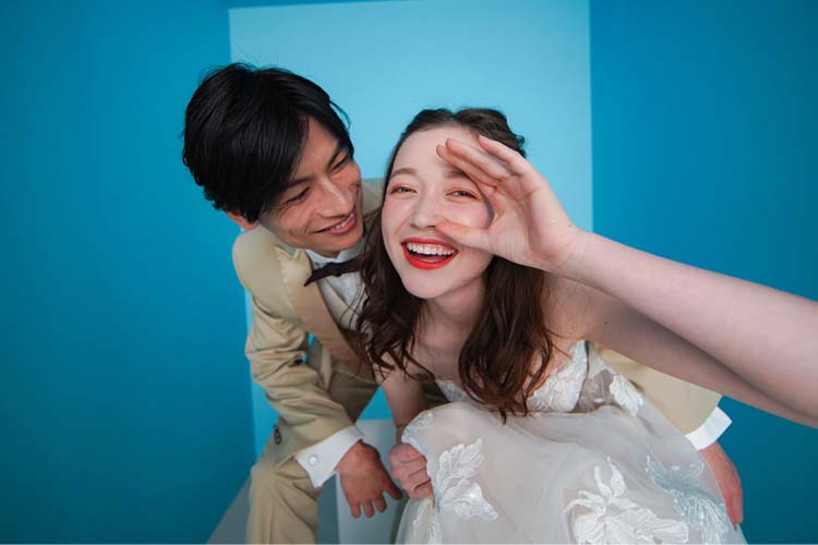 シンプルな立ち姿や、寝転びショットなどさまざまなポーズでウェディングフォト撮影が楽しめます。