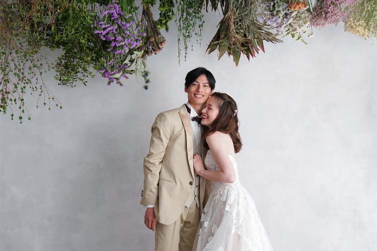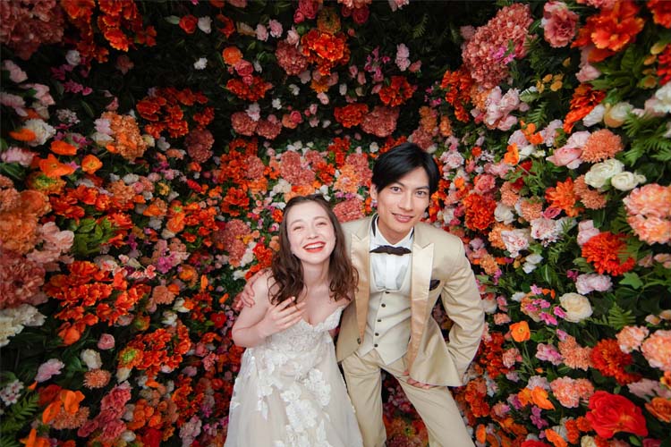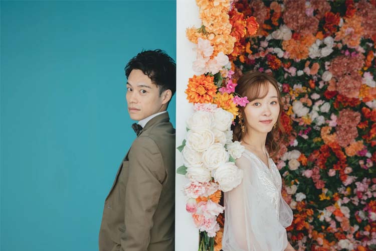 カラフルなフラワーウォールや色の違いが楽しめるPOPな背景、そして大人シックなドライフラワーで撮影ができるプラン。