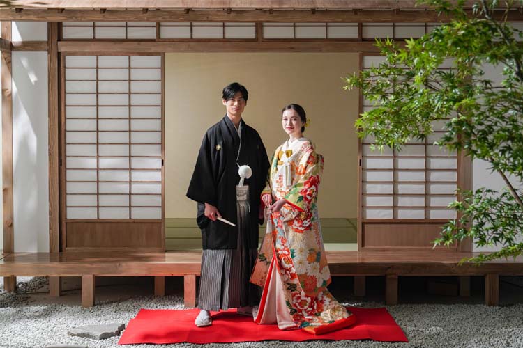 宮大工が手掛けた本格的な茶室で、人目を気にすることなくロケーションフォトのような和装撮影ができます。
