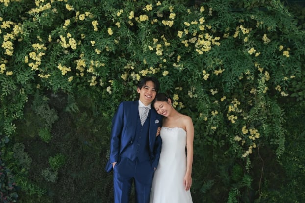 彼がカメラの前で笑うのが苦手なのですが、ふとした瞬間の笑顔をばっちりと撮っていただいていたので、自然な笑顔の素敵な写真になっていました。また、モノクロや物陰からの撮影など少しオリジナリティがあるバージョンも撮っていただき、プロならではの写真に仕上がっていたのも気に入りました。