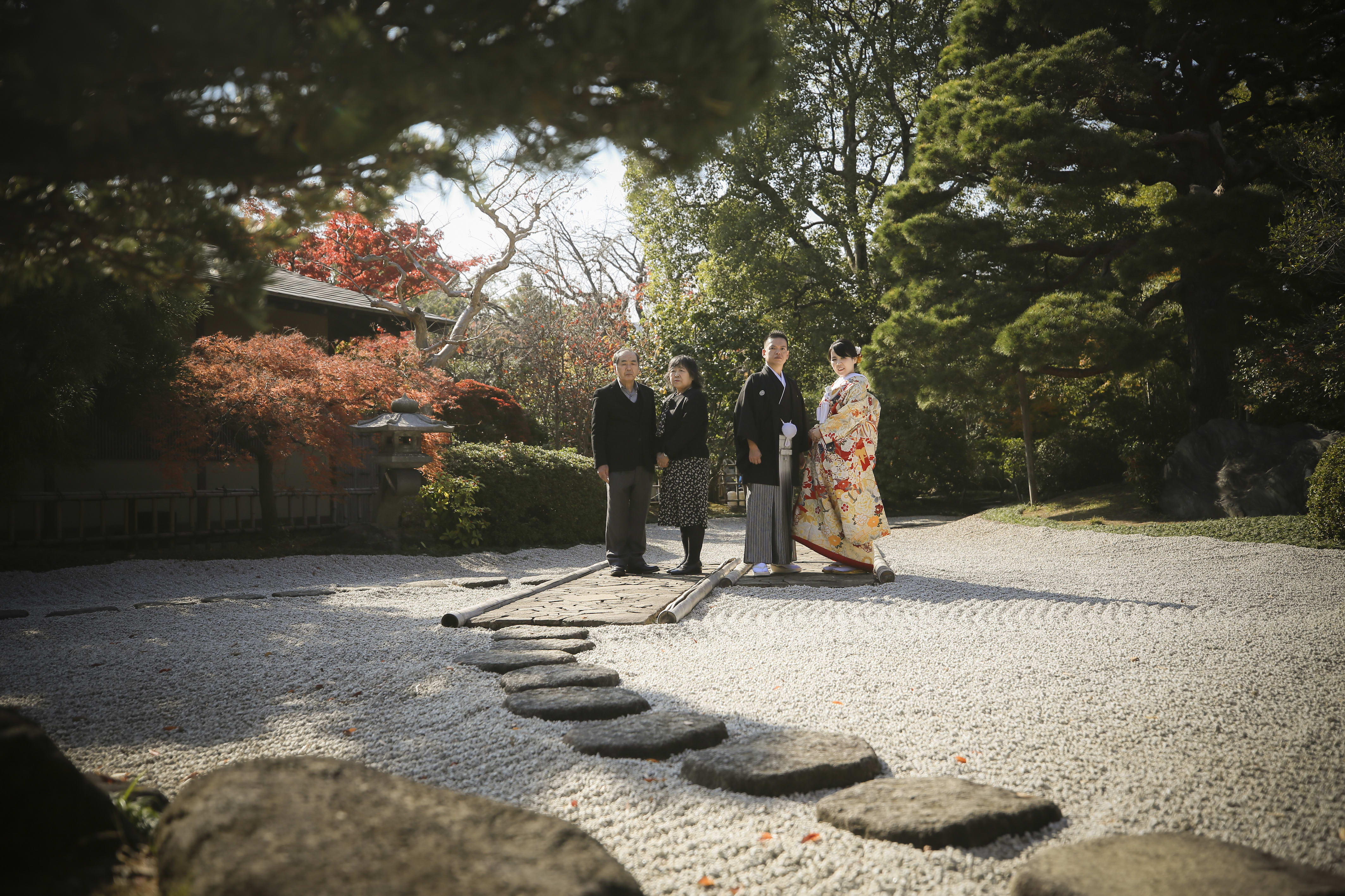 池の畔には数寄屋造りの源心庵があり、池畔を回る散策路ではツツジ・ハナショウブ・モミジなど四季折々に移り変わる自然の美しさを身近に感じられます。