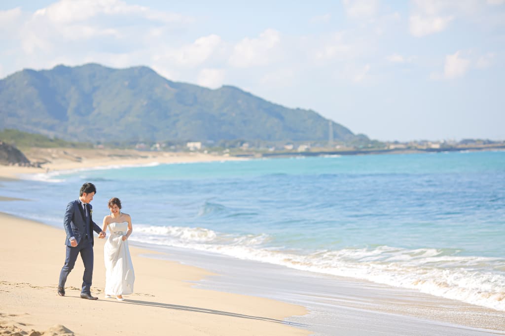 福岡県最西部に位置する市。都会からの移住者も急増中の福岡県の人気スポット。「日本の渚100選」「日本の夕日100選」にも選ばれ、洋装ロケーションフォトにぴったりな風景が広がります。