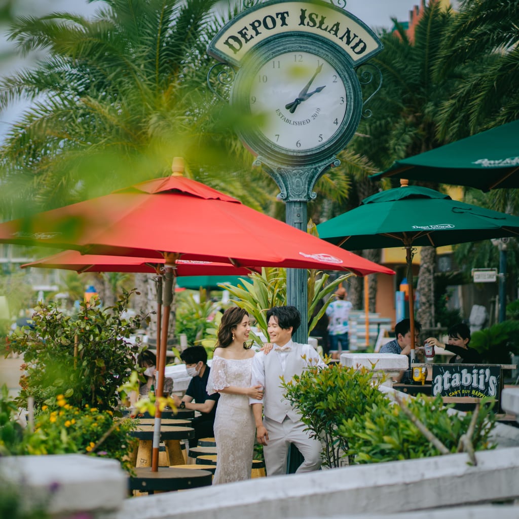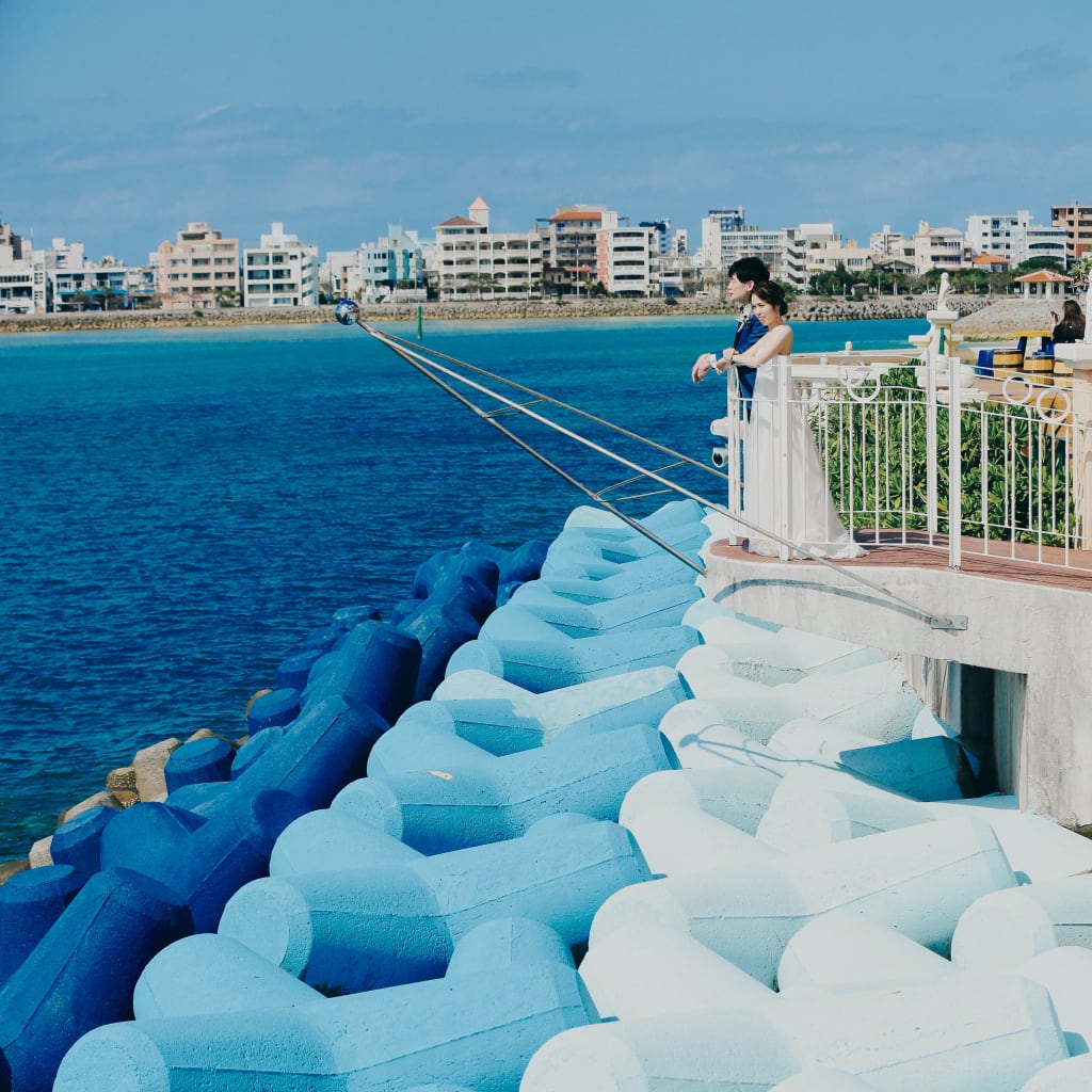 アメリカンビレッジは、沖縄を代表する大型ショッピングモール。ハワイの街並みを感じさせる景色は、どこを切り取ってもフォトジェニックです。夜にはライトアップされ、ロマンチックなスポットへと姿を変えます。
