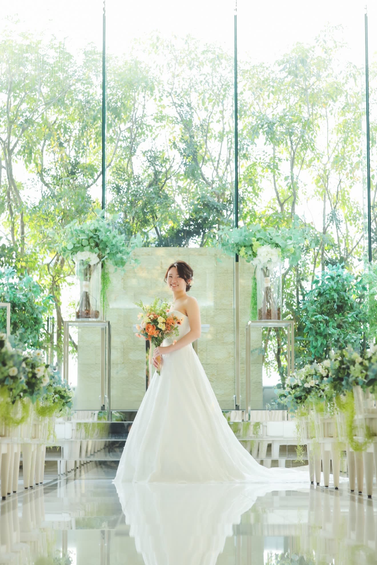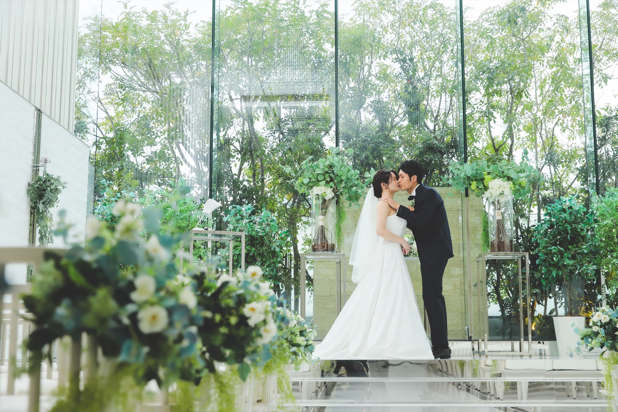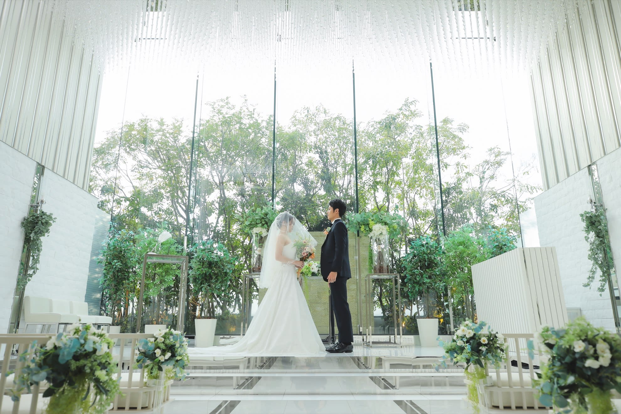 永遠の愛を誓う「クリスタルチャペル」は、花嫁の美を最高に引き立ててくれるセレモニーステージ。