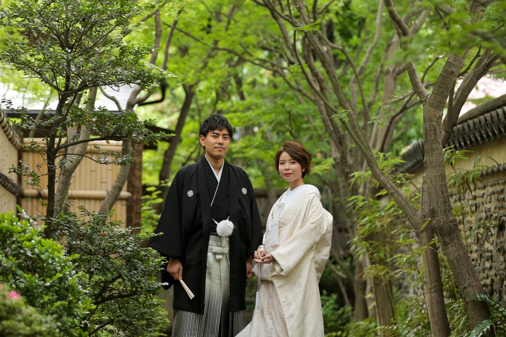 敷地内には茶室もあり、お抹茶やお茶菓子をいただくことも。美しく整えられた茶庭を臨みながら、和室で落ち着いた和装撮影を行うことも可能です。