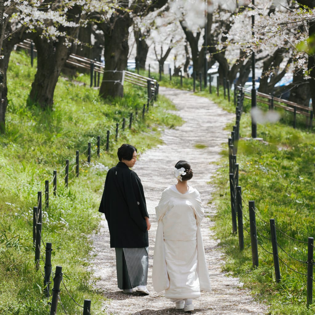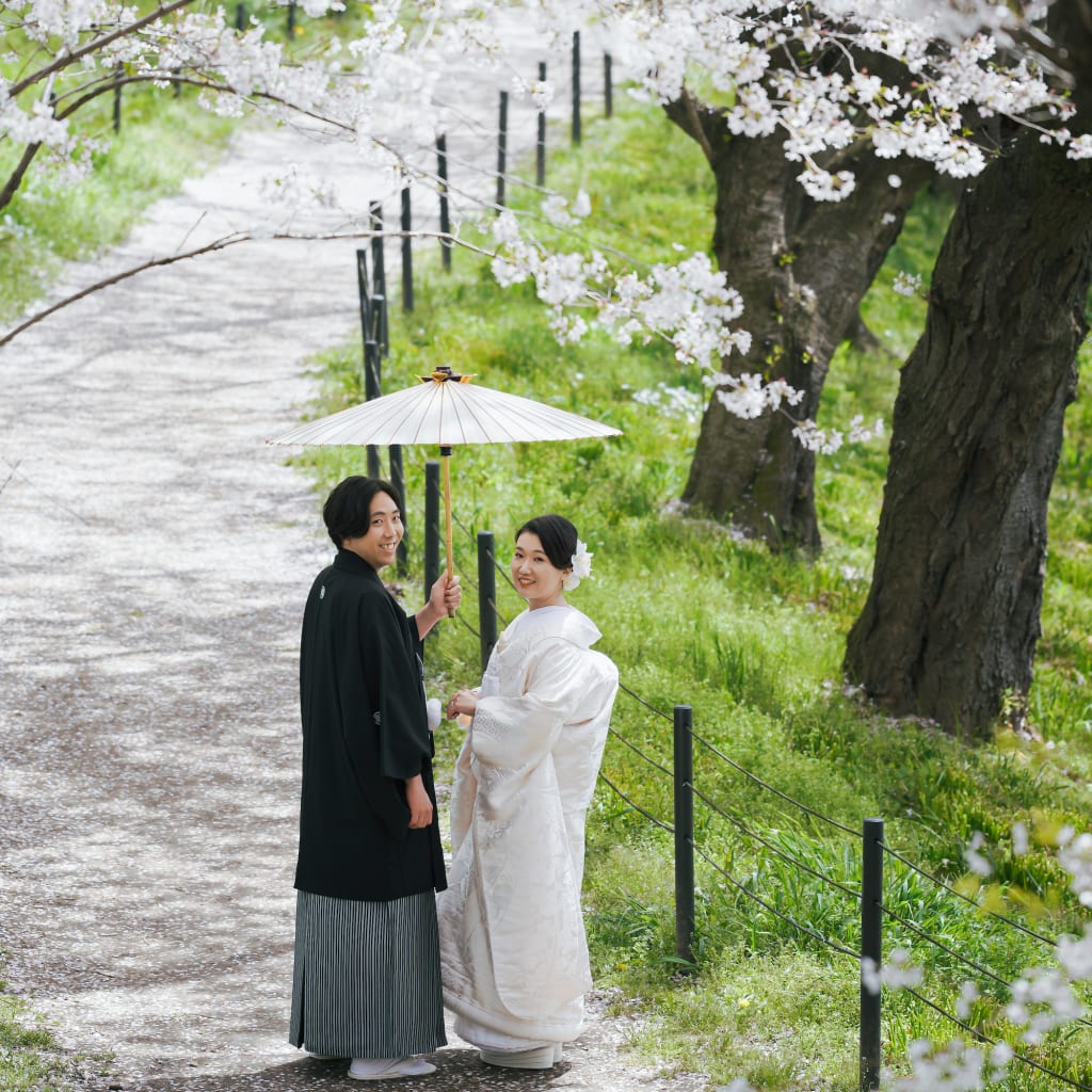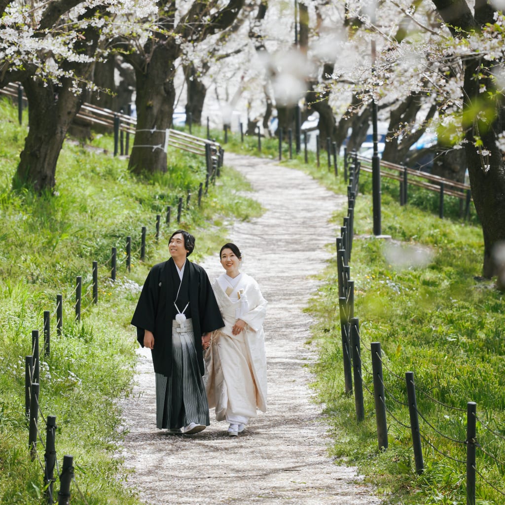 着いたら思わず桜並木に圧倒されるこのロケ地!壮大な景色で前撮りやフォトウェディングの撮影をされてはいかがでしょうか?