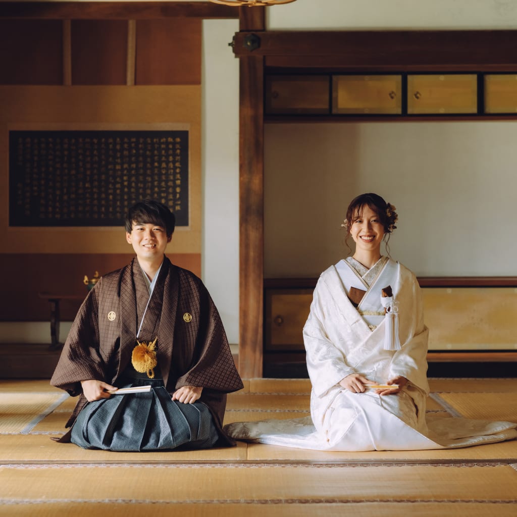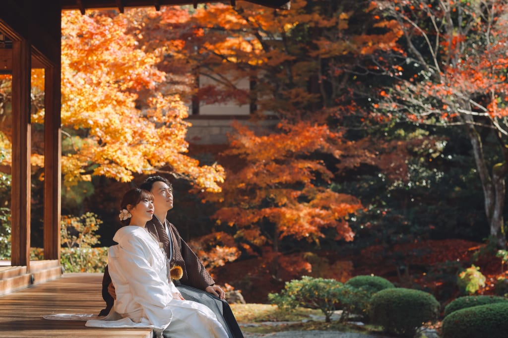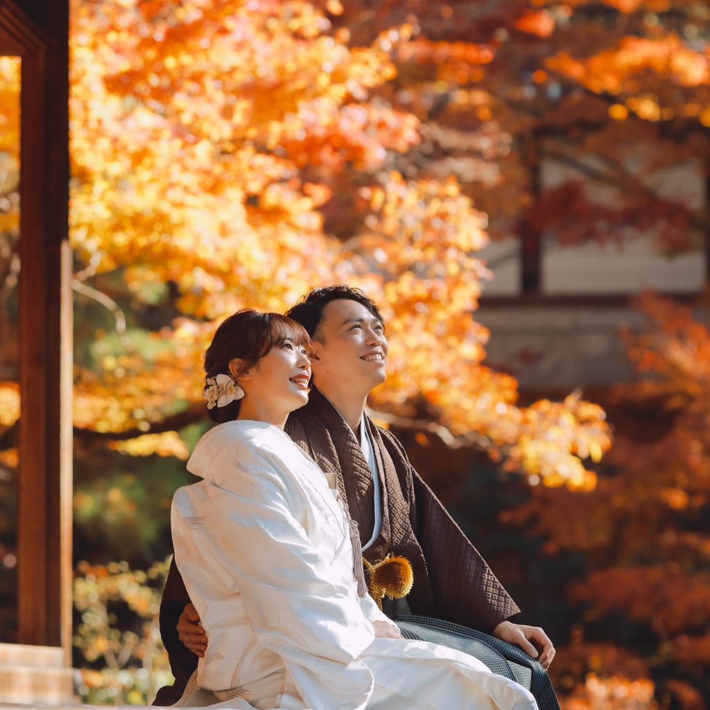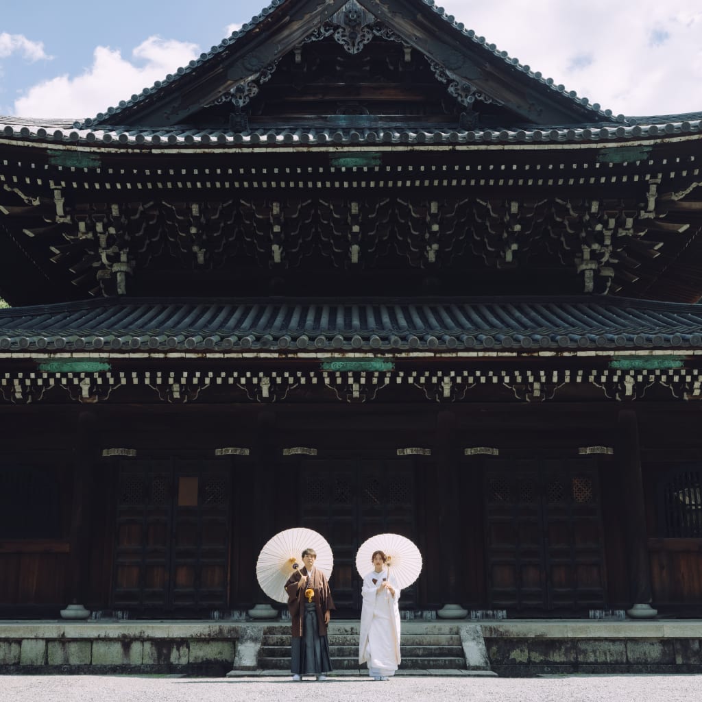 皇室ゆかりの寺院で、厳かな和の結婚写真を