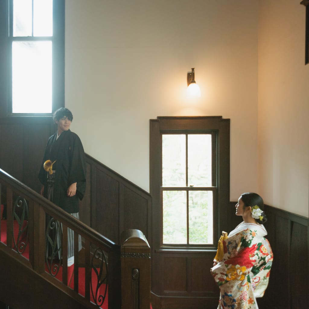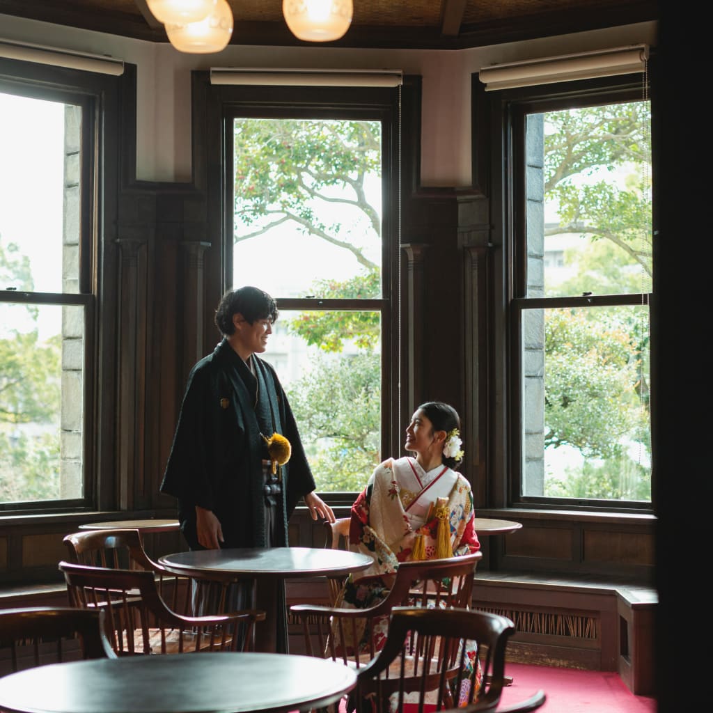 ドレスの撮影はもちろん、和装にも合う日本庭園やレトロな館内でもどちらの衣装も映えるロケーションスポットです。