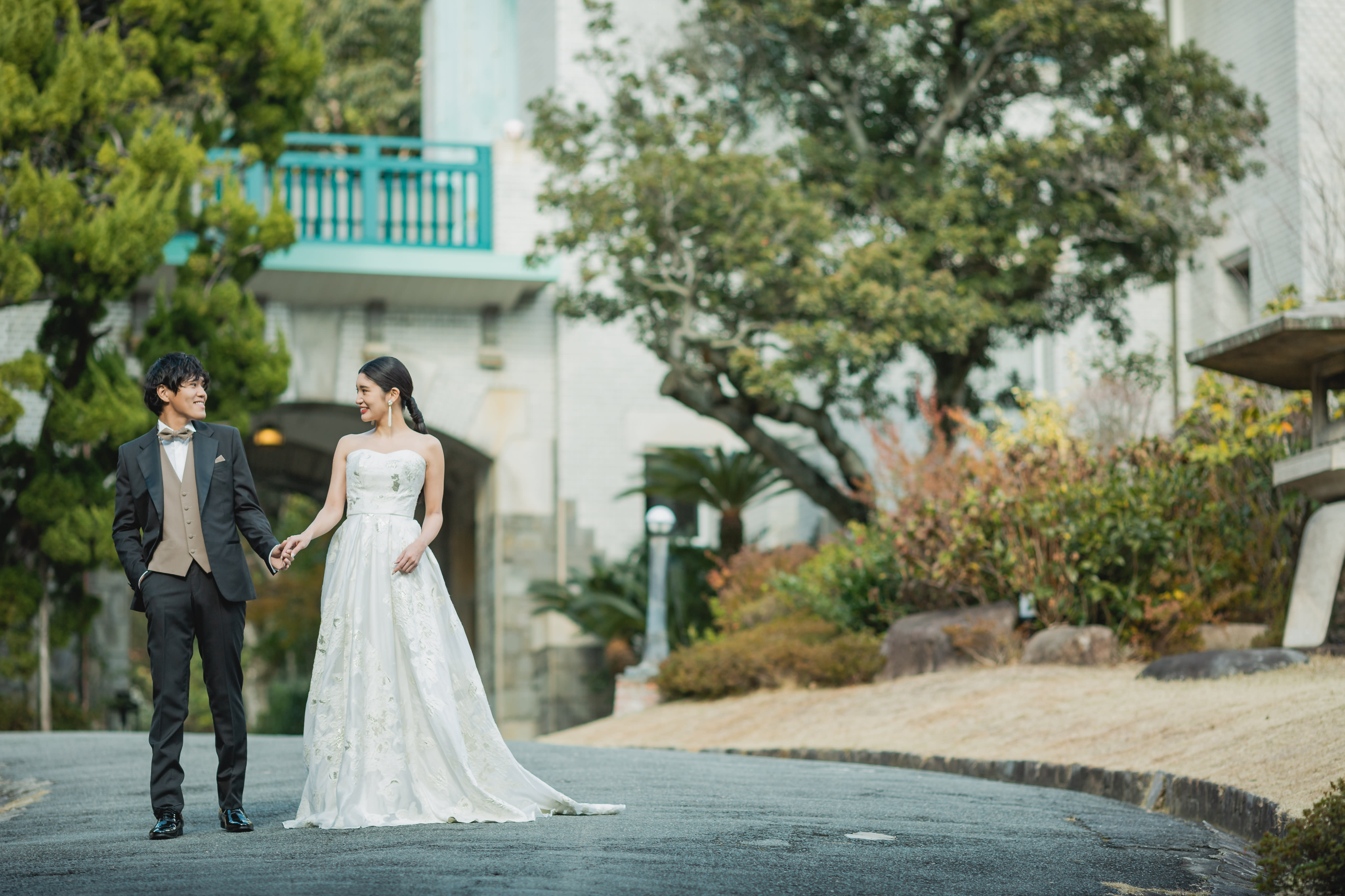 広いお庭の優雅な洋館ウエディングフォト