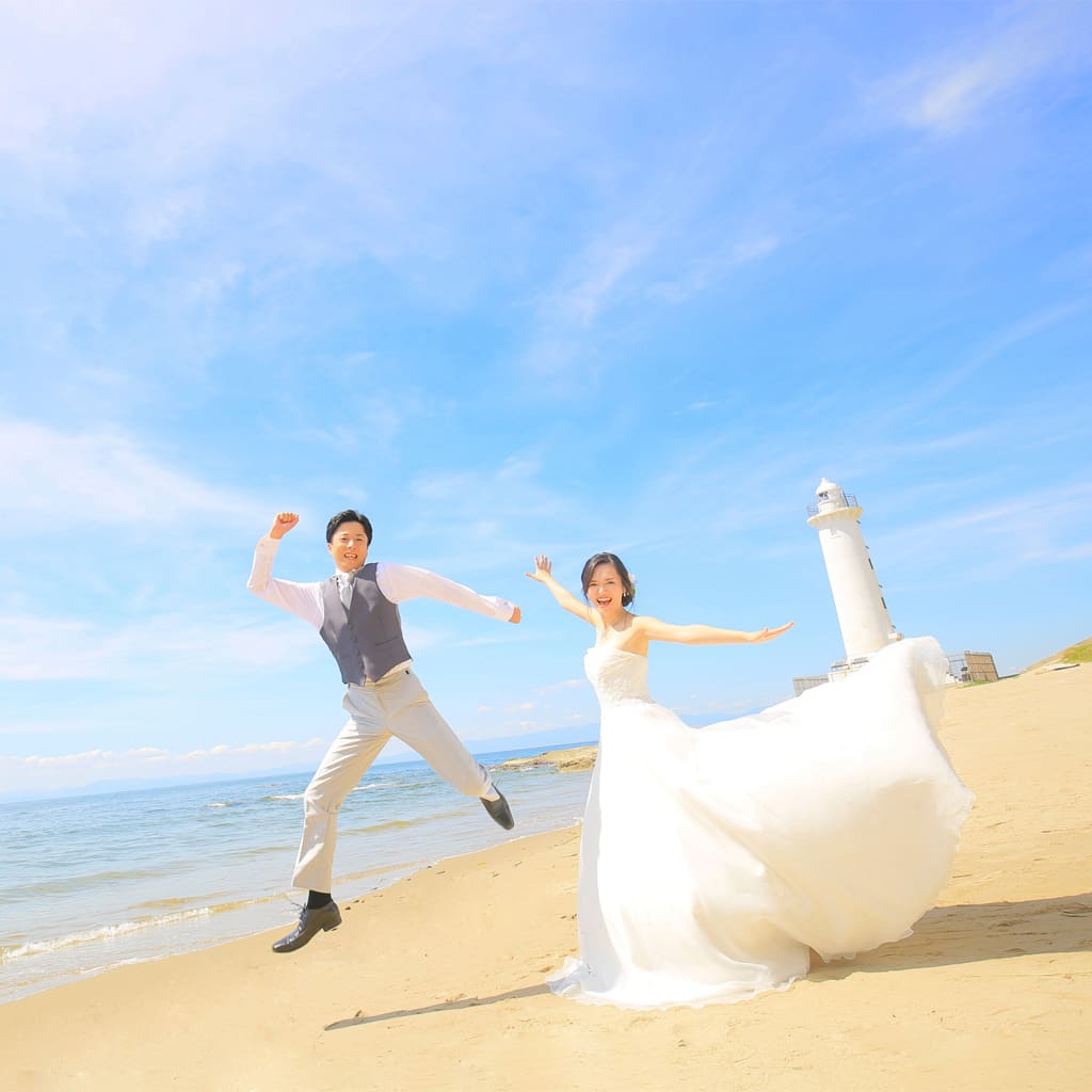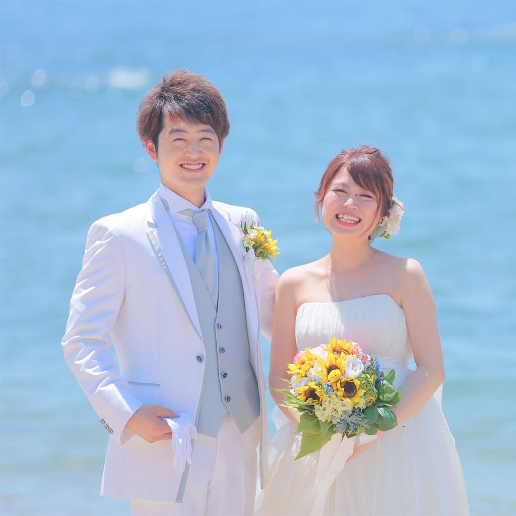 海の青に空の青が重なった風景は息を呑む美しさ。ぜひお二人だけの時間をこのロケーションで楽しんでください。