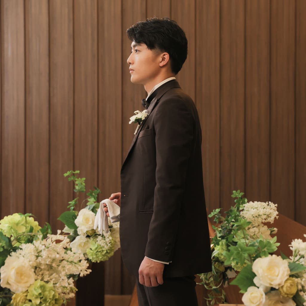 落ち着きのある木目調の上質チャペル空間でブライズルームからチャペル内まで撮影が可能
