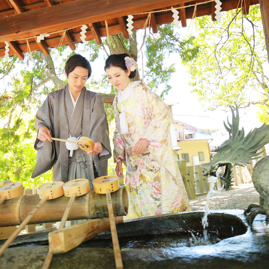 名古屋周辺の神社仏閣で、神聖な結婚写真に