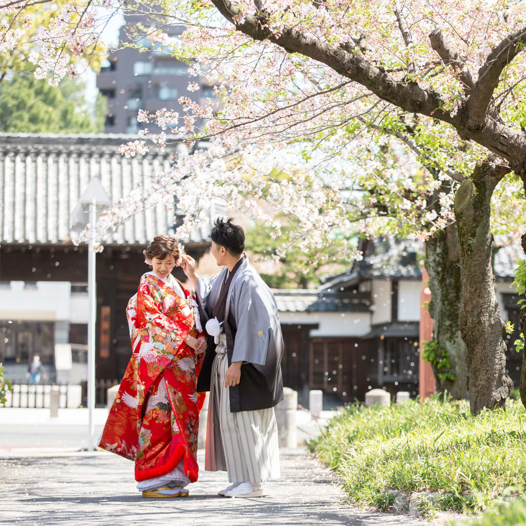神社やお寺で撮る結婚写真は、神聖な一枚を残せるロケーション撮影に。名古屋周辺にある神社仏閣の中から、お二人にぴったりなスポットをご提案させていただきます。神様に見守られながらの撮影は、一生に一度の記念にふさわしい思い出となることでしょう。