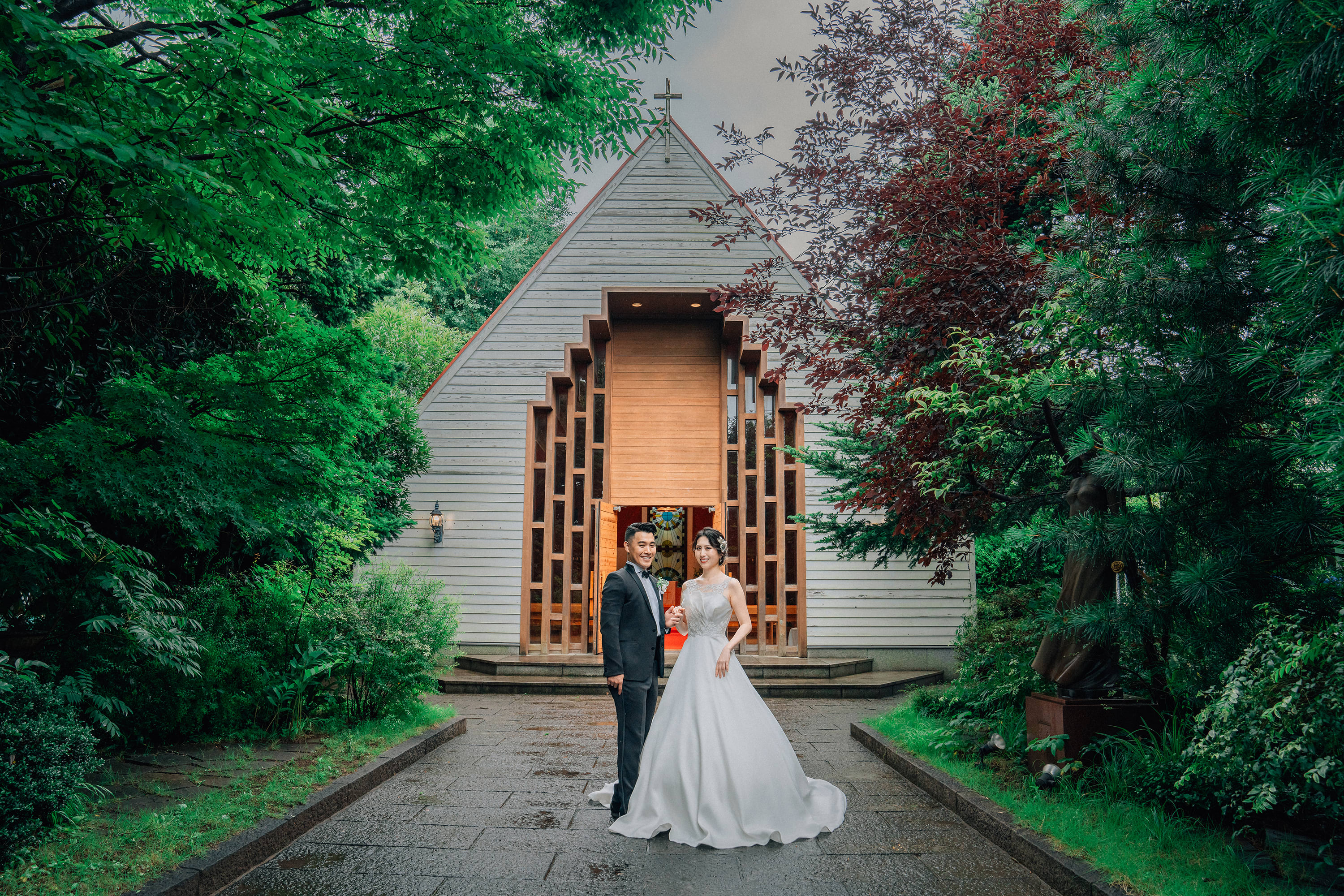 緑豊かな木々に囲まれた独立型の木造チャペルはリゾート感を感じることができます。