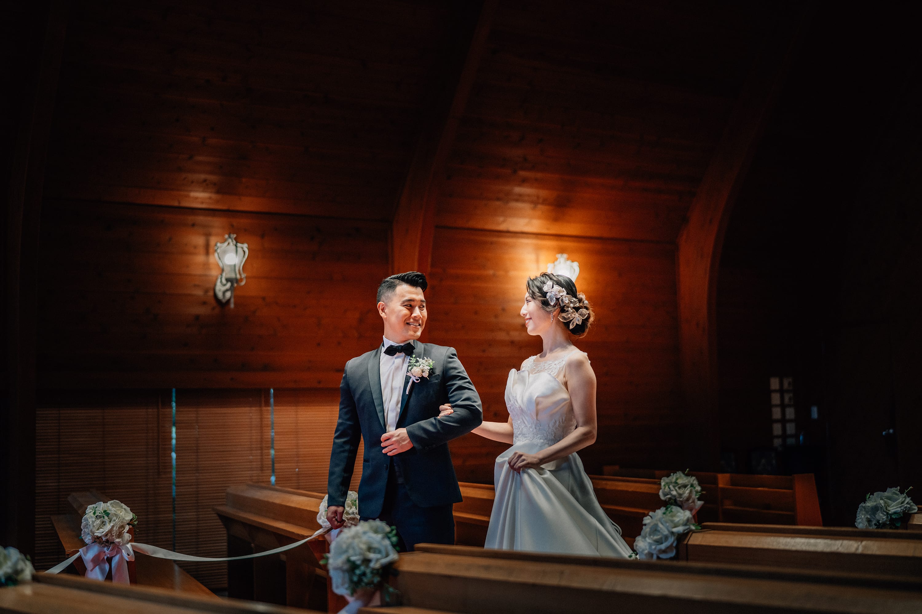あたたかな木の温もりとステンドグラスのチャペル