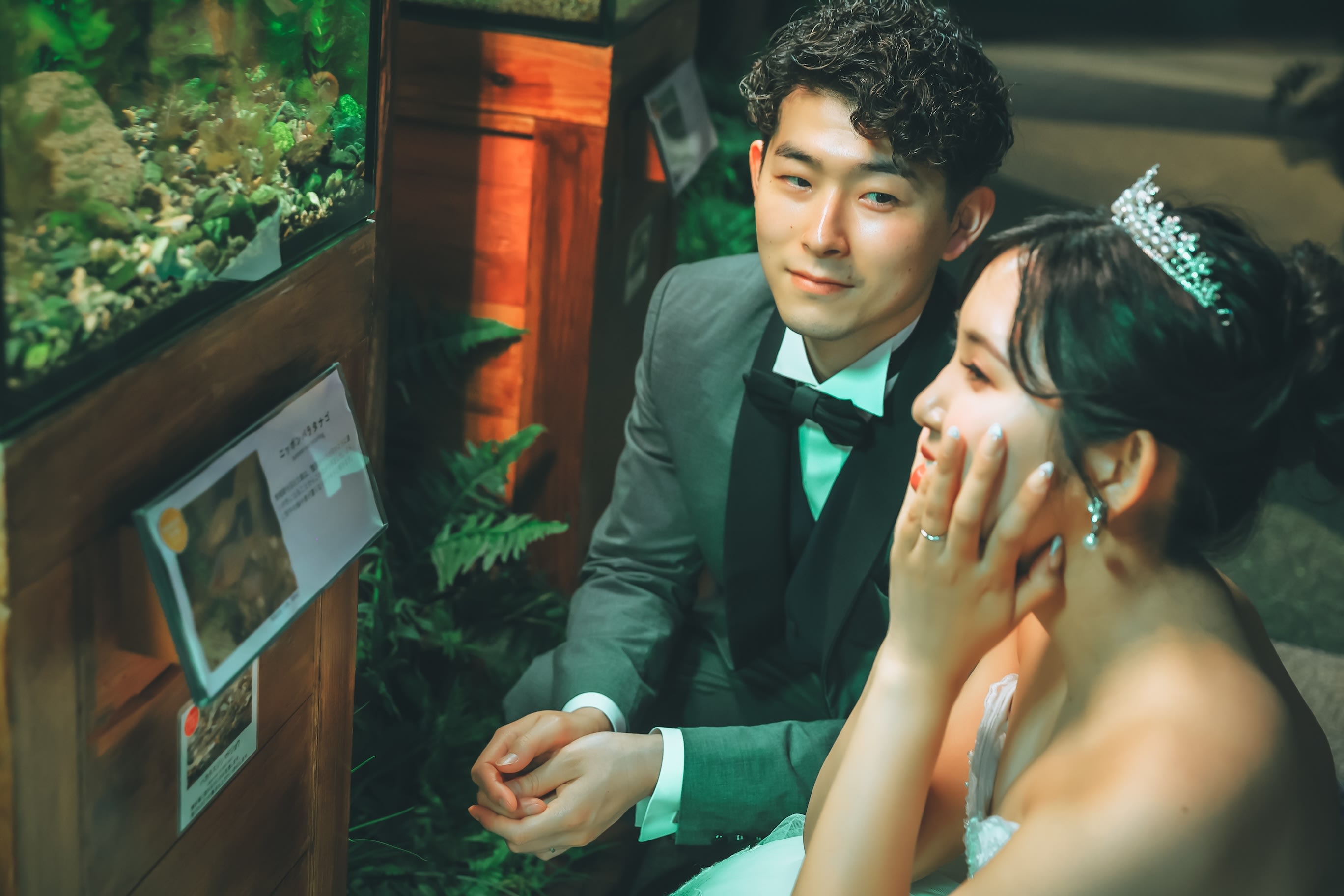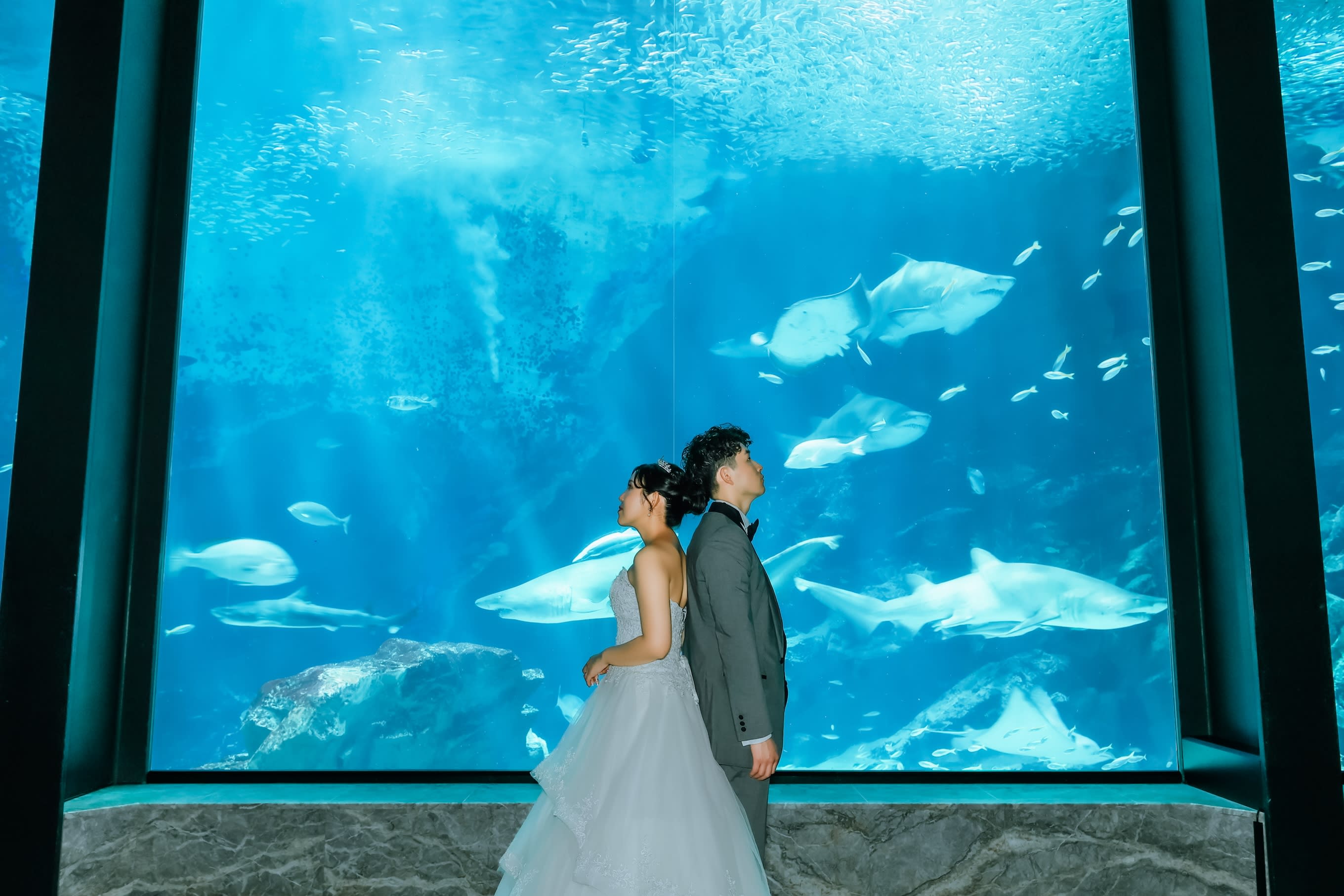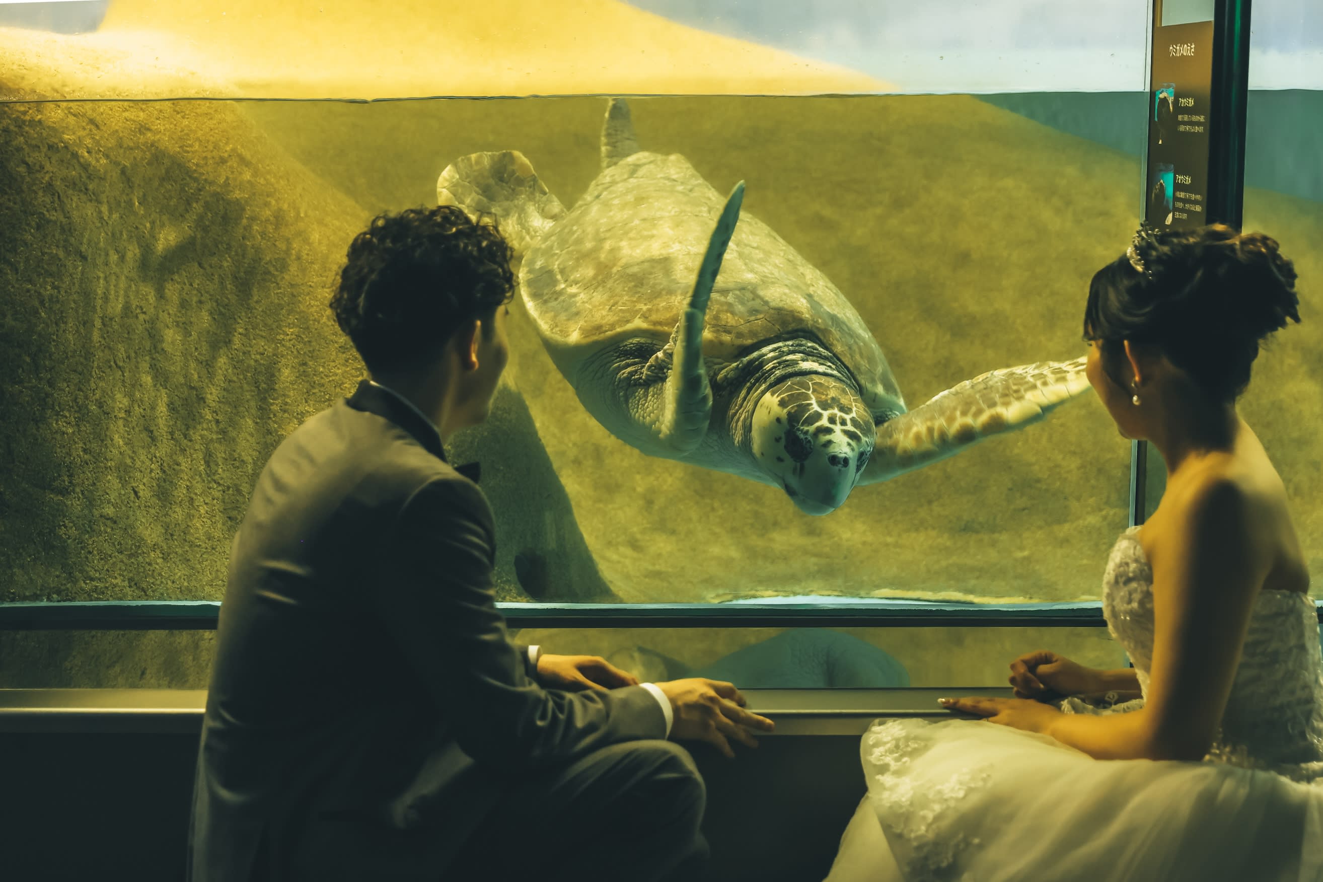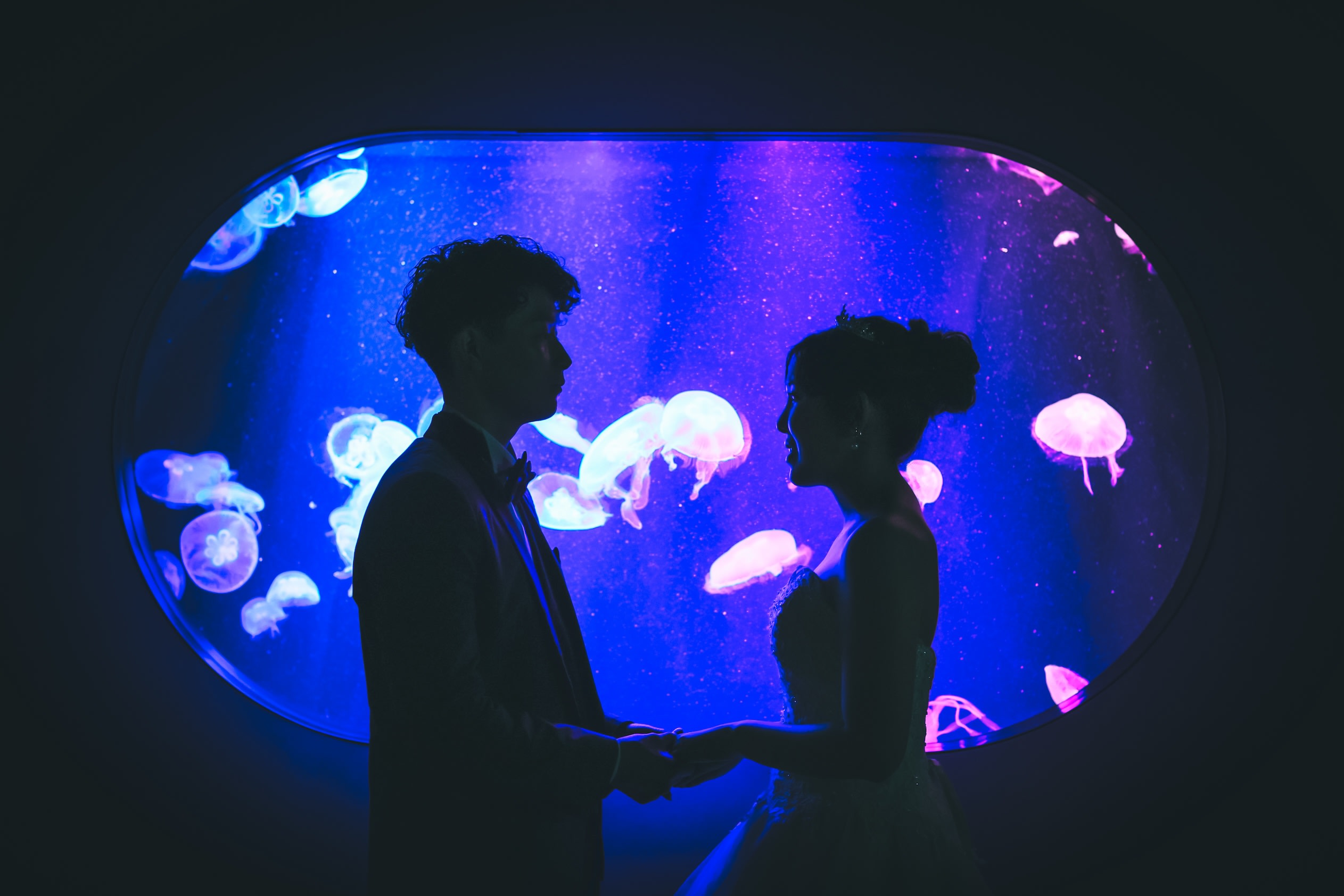 海の生き物や、神秘的な水槽の前での撮影が可能!マリンワールドロケーション。