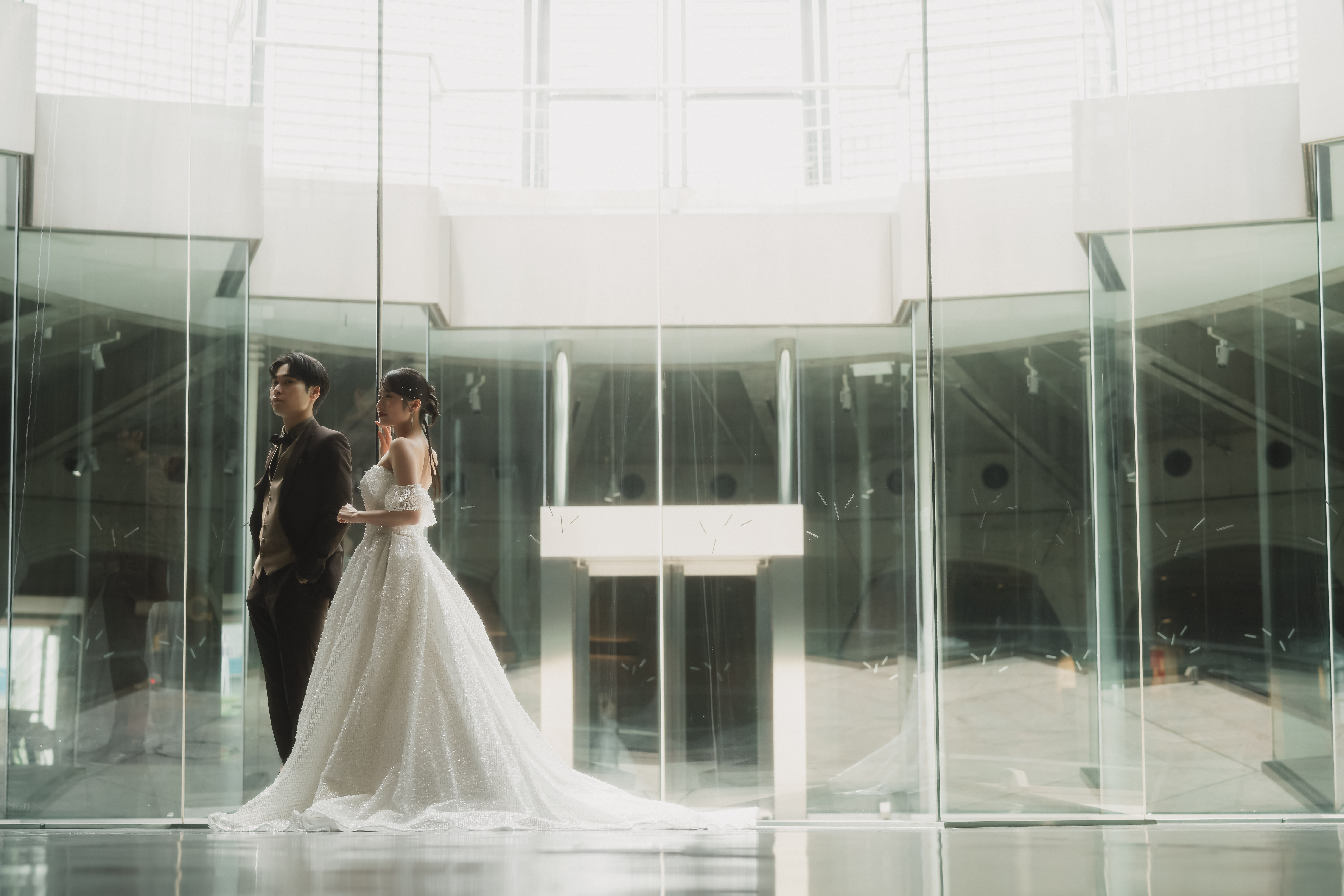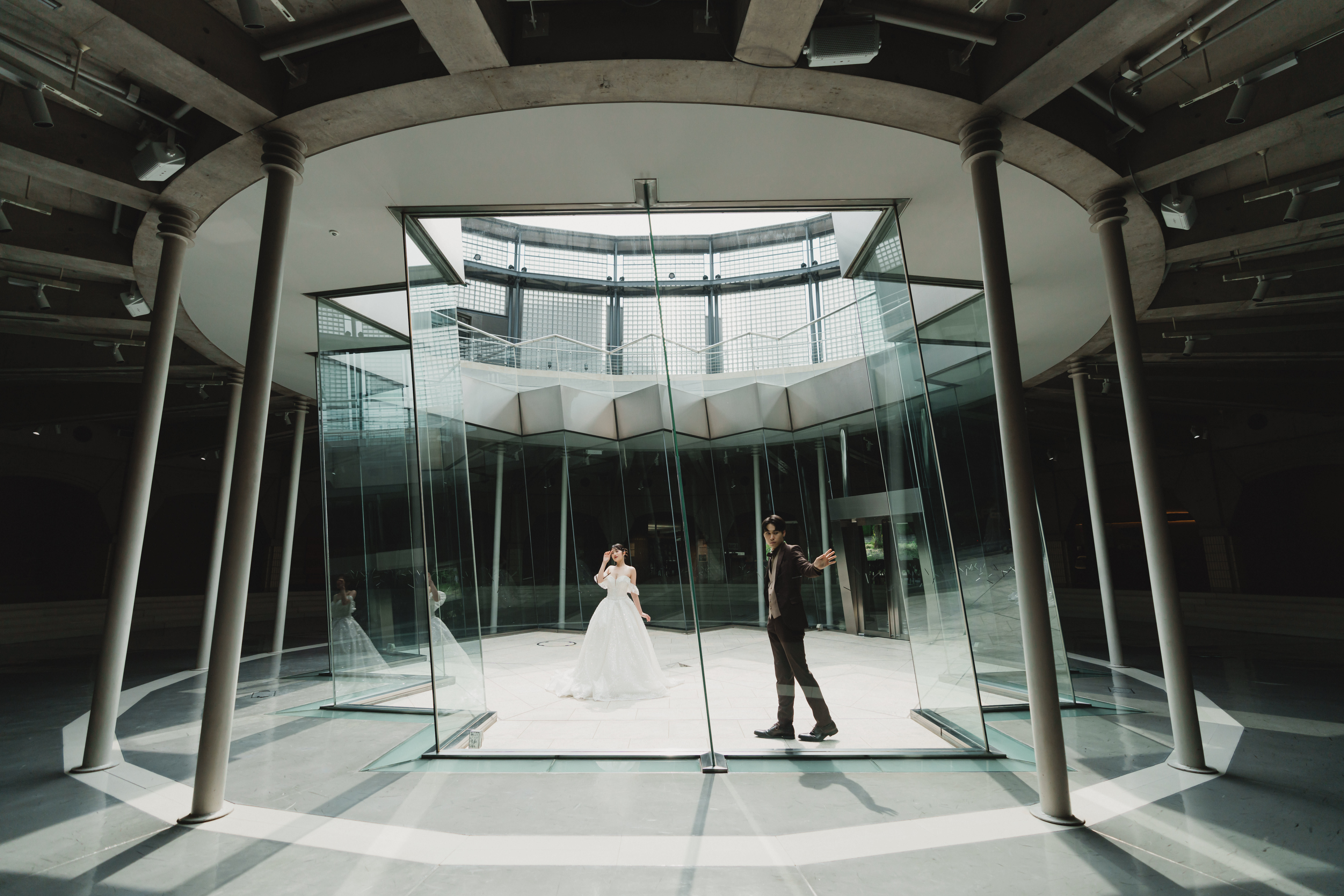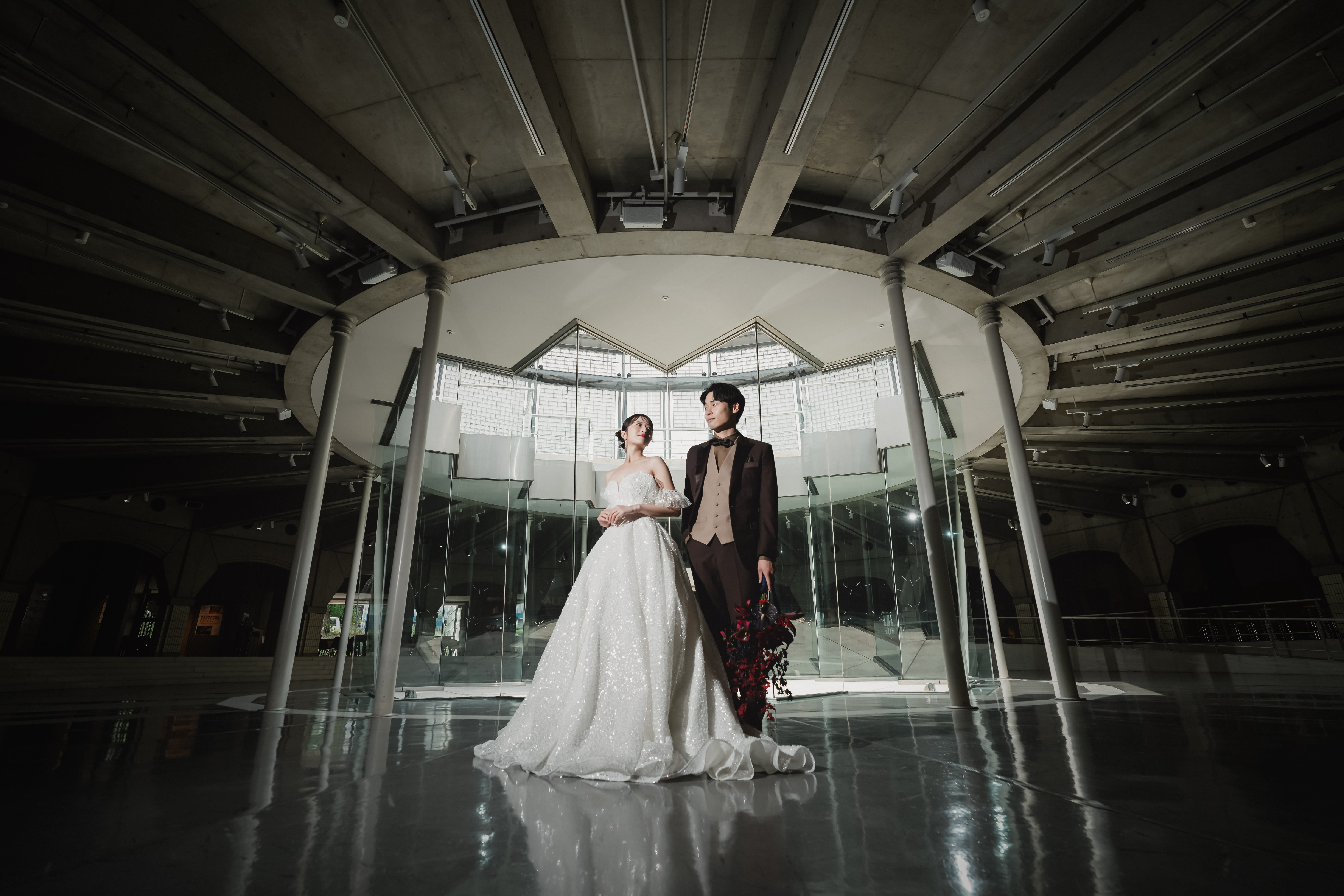 ガラス屋根から自然の光が入る幅5m、長さ100mにも及ぶ通路「ガレリア」をはじめ、内外装に特徴的な建物で、非日常感のあるフォトウェディングが叶います。