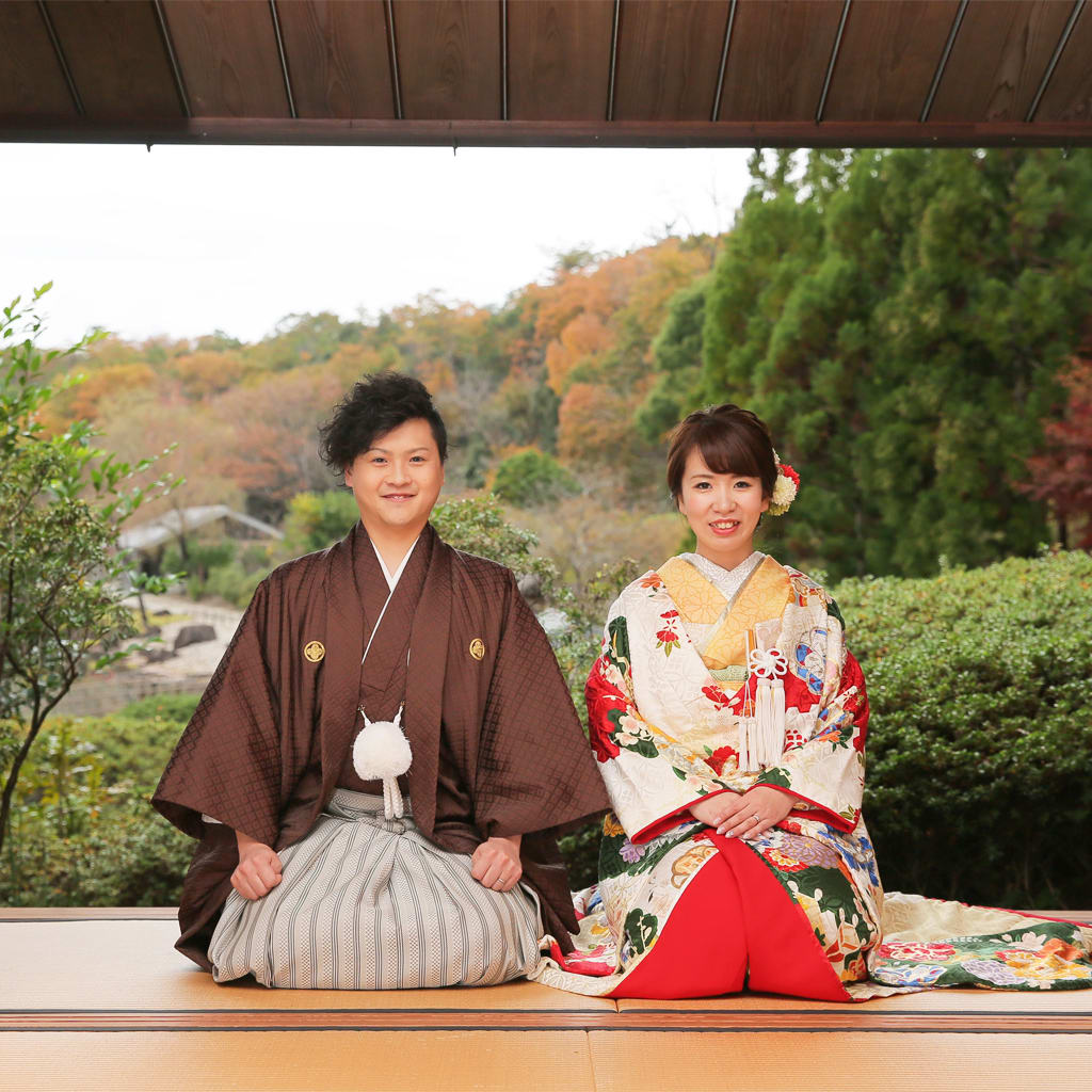 香流亭を出れば、美しく整えられた日本庭園が広がります。季節によって表情を変える自然が日本らしい雅な景観を作り出し、訪れる人の心を穏やかにしてくれるでしょう。桜や新緑、紅葉などが、おめでたい結婚写真により華を添えてくれます。池や橋など、和の風情を感じられるスポットがたくさんあるので、バリエーション豊かな撮影も可能です。