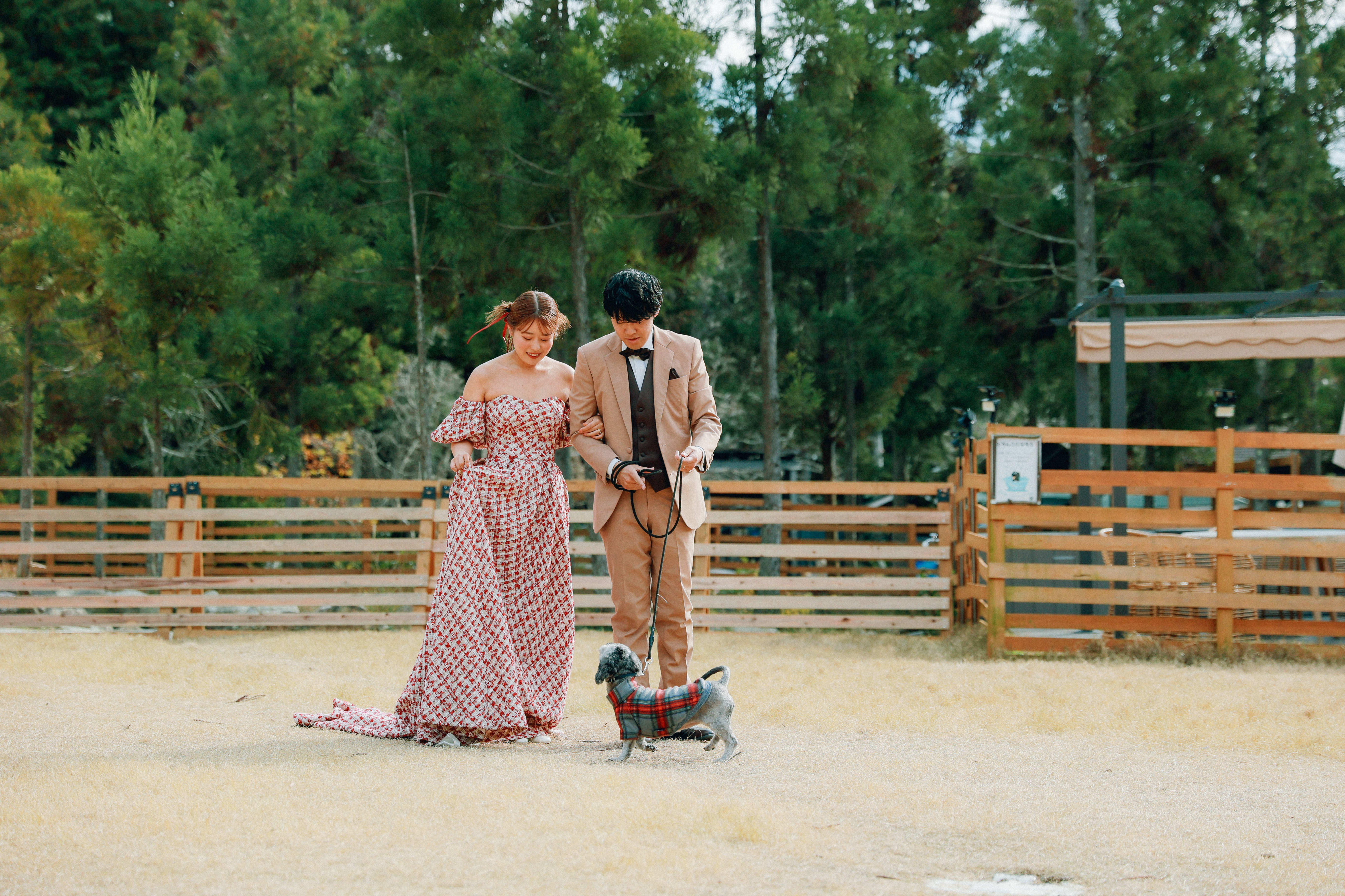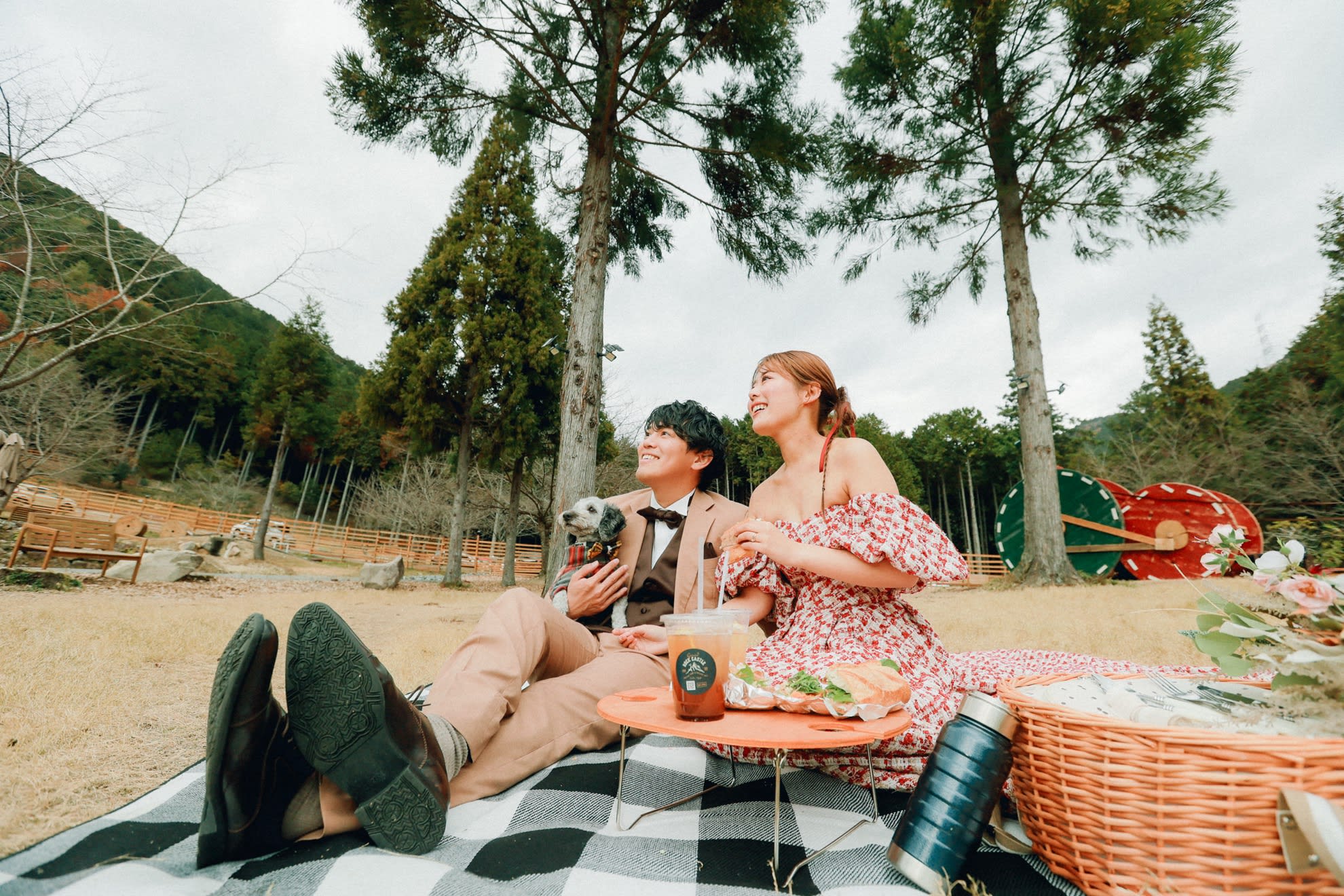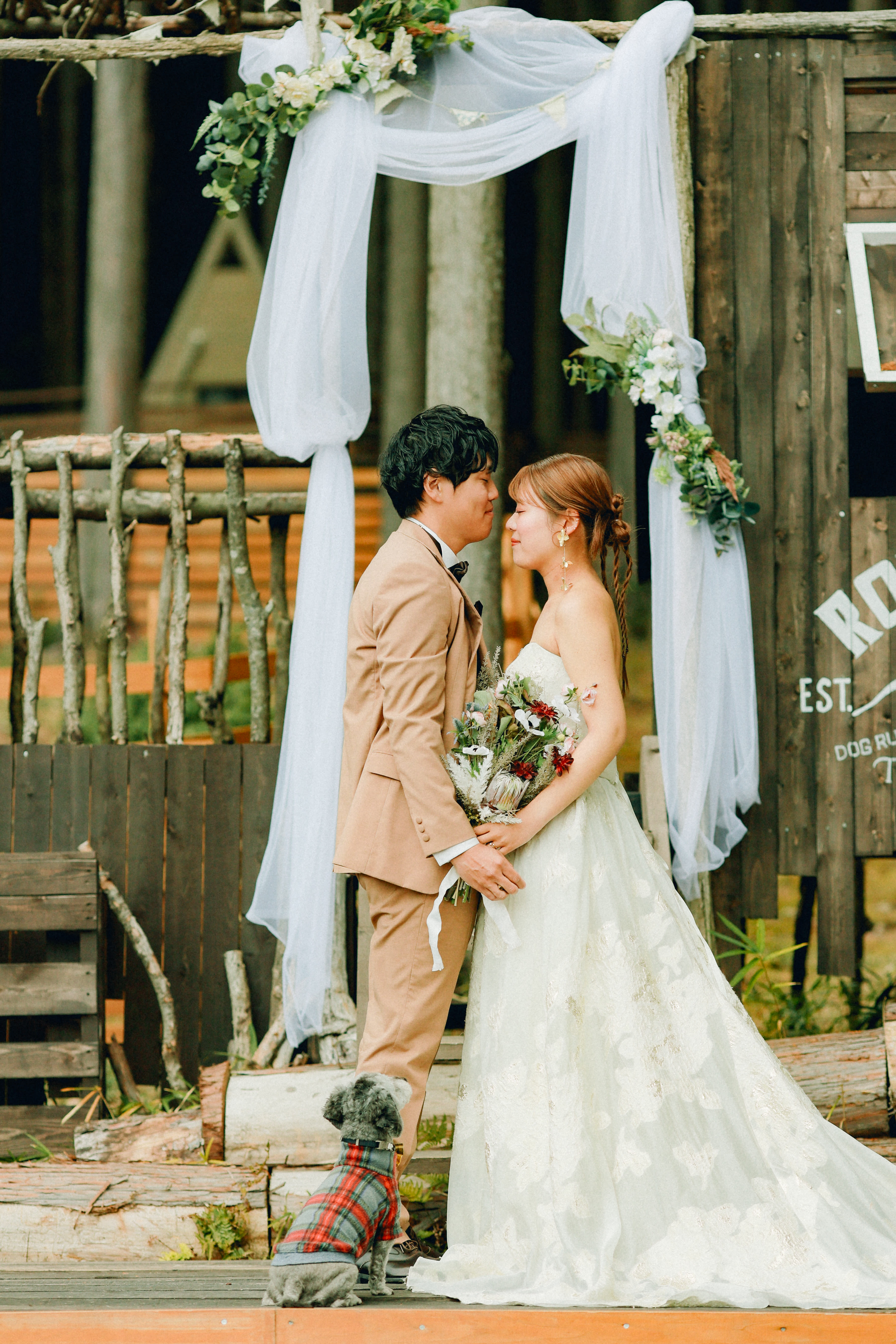 犬と一緒に過ごすキャンプ体験と、自然の中でのウェディングフォトを楽しむことができます。