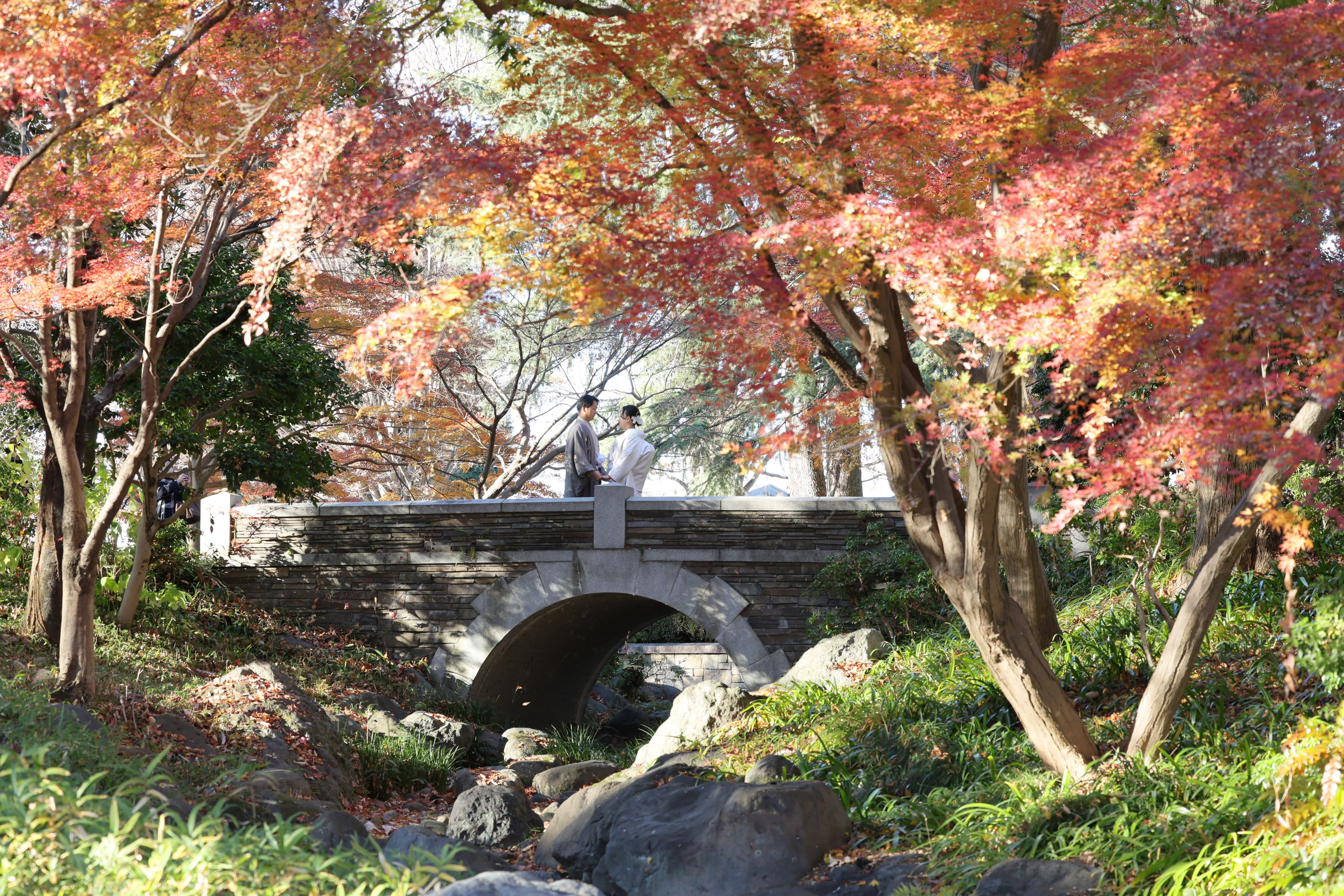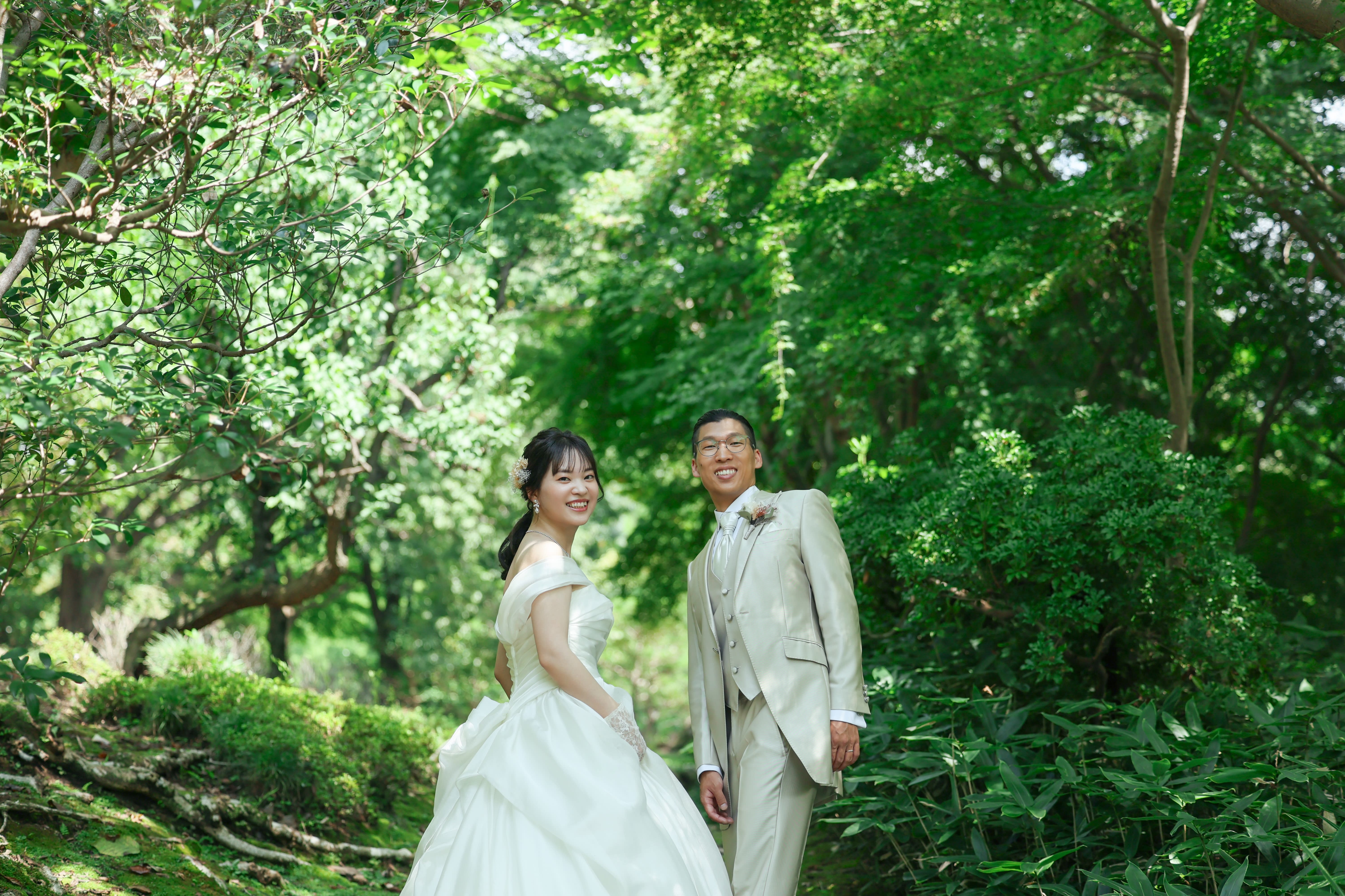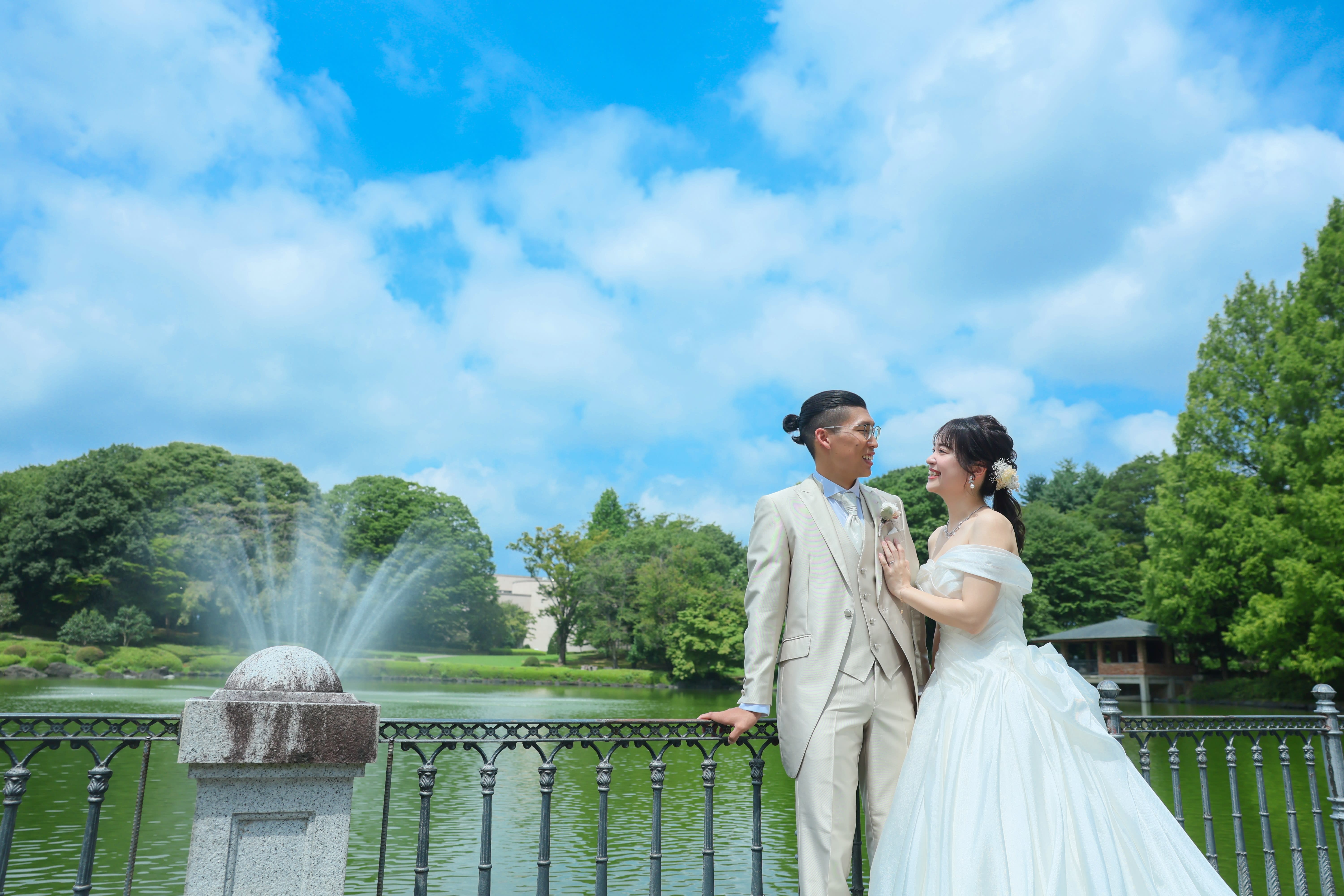 日本庭園やフランス風の庭園を思わせる沈床園など、和装でも洋装でも美しいフォトウェディングを残すことができます。