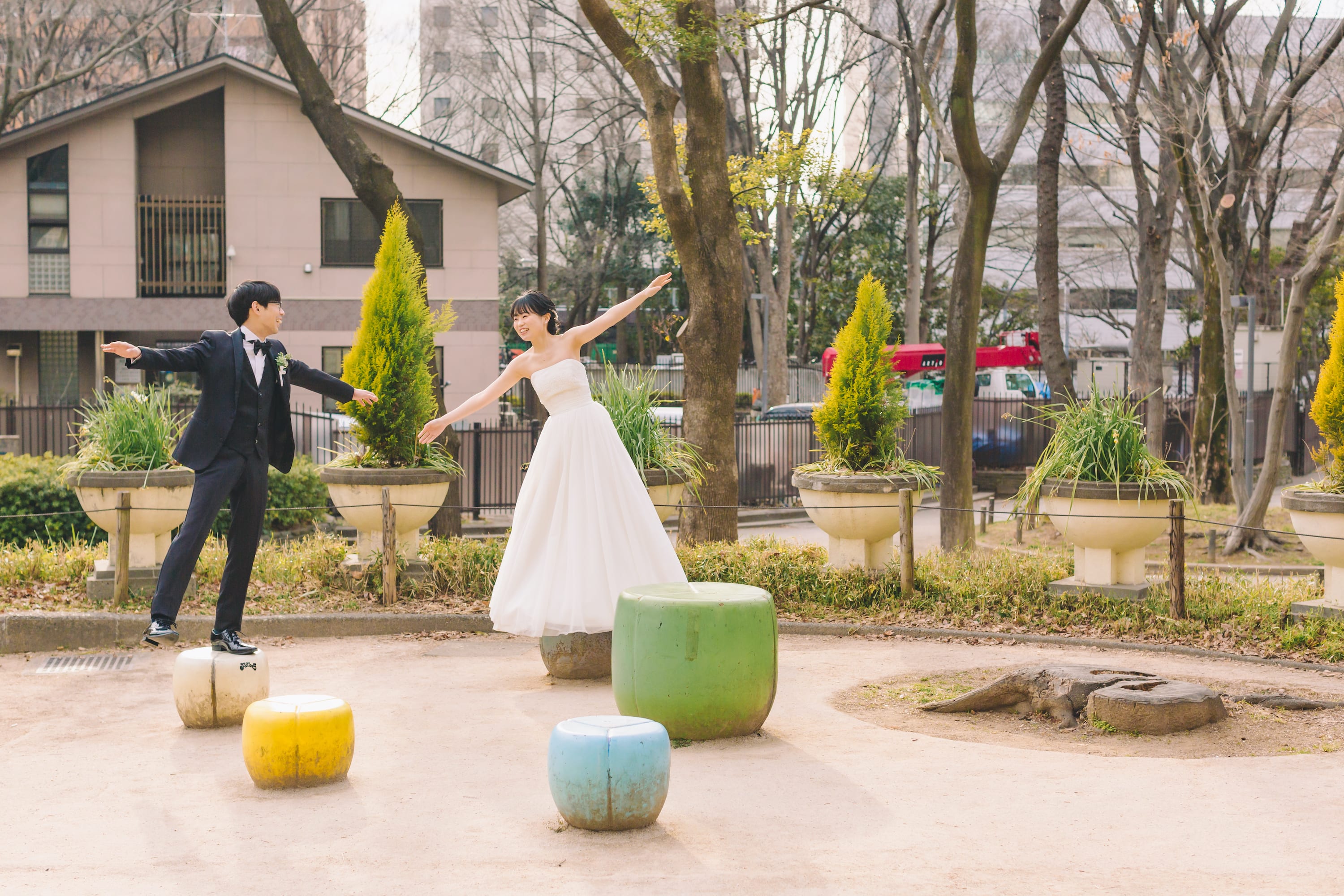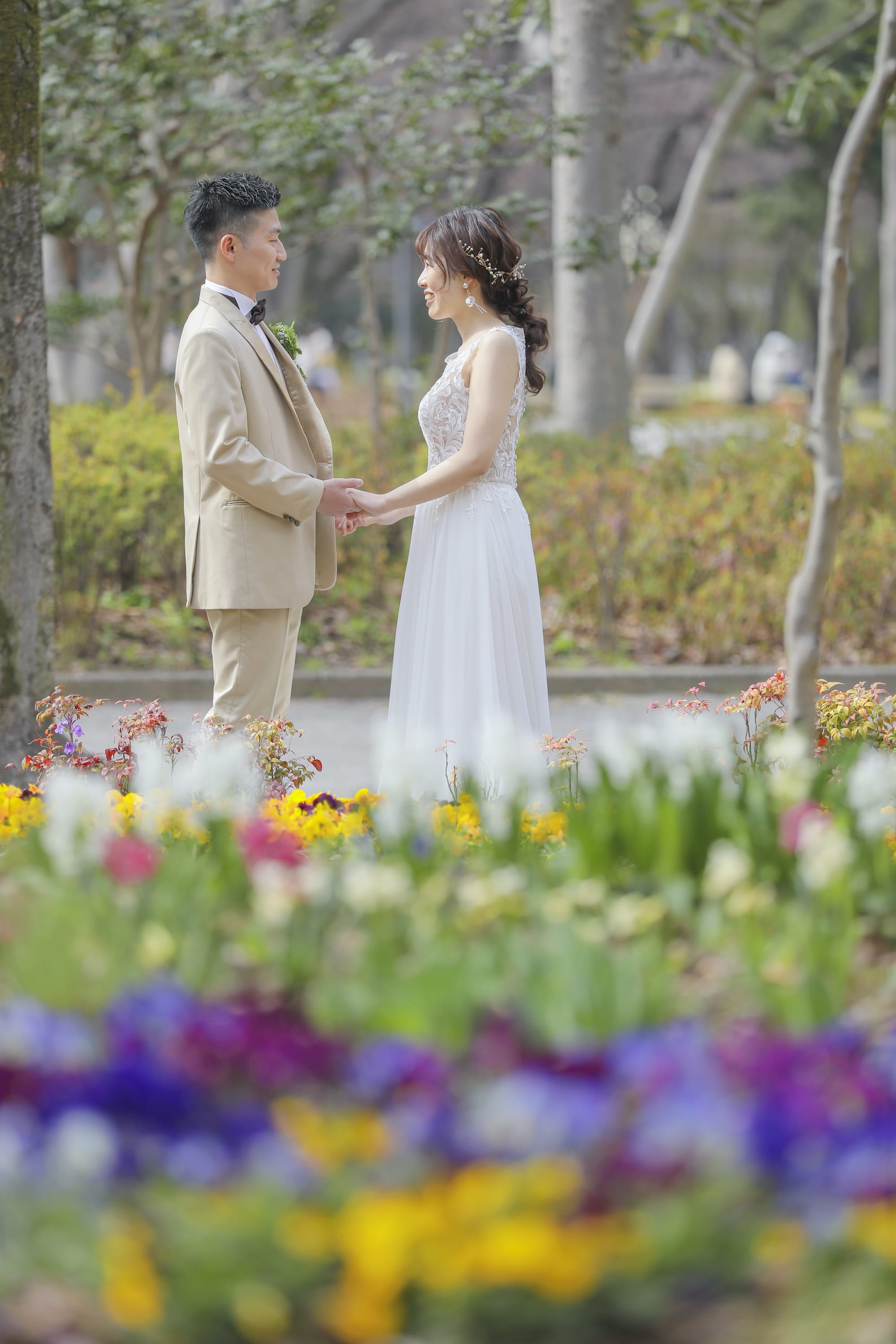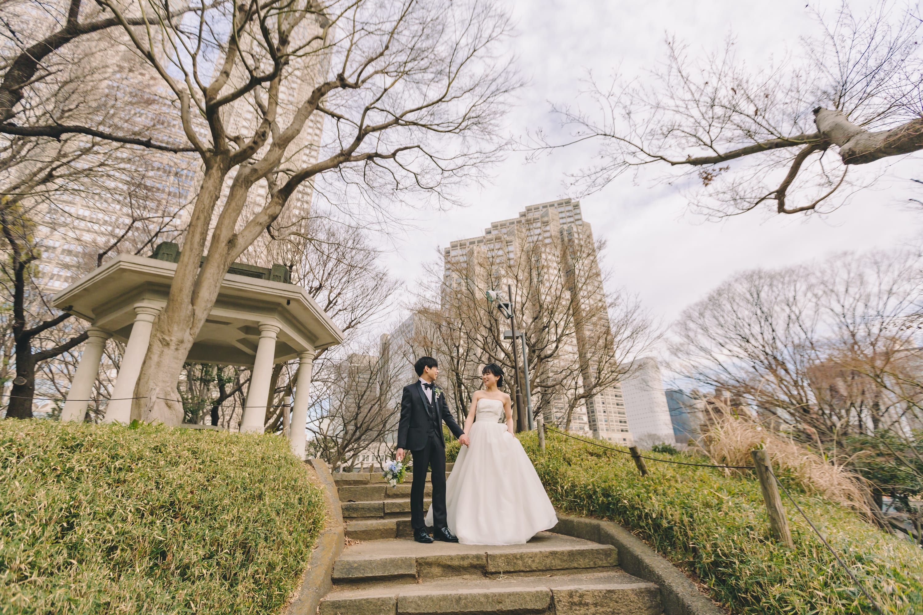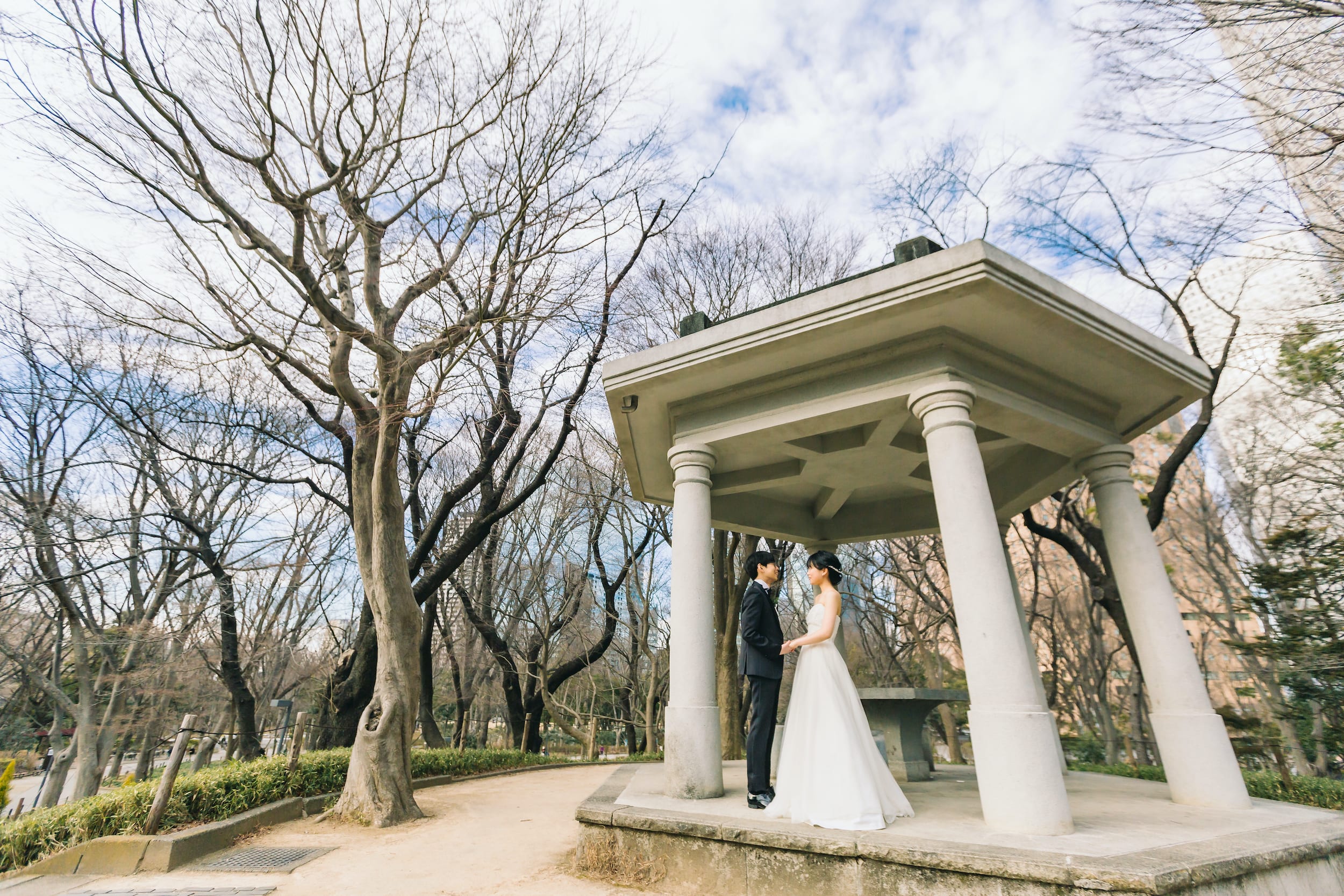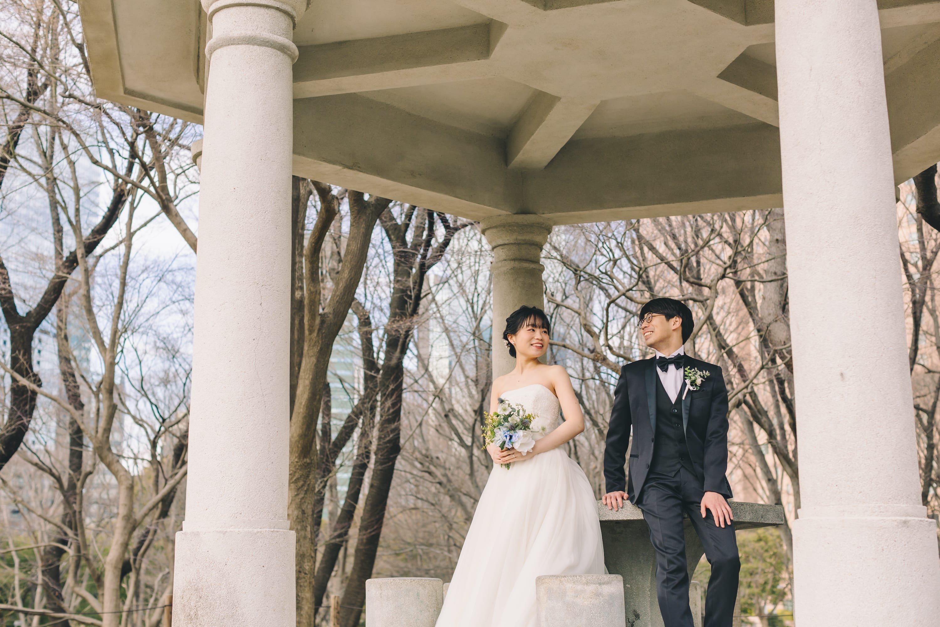 四季折々の草木が園内を取り囲み都会の中とは思えないほど自然と触れ合うことができます。園内には様々なロケーションスポットがありますので、ご希望のイメージに合う場所を散策しながら見つけるのもいいかもしれません。