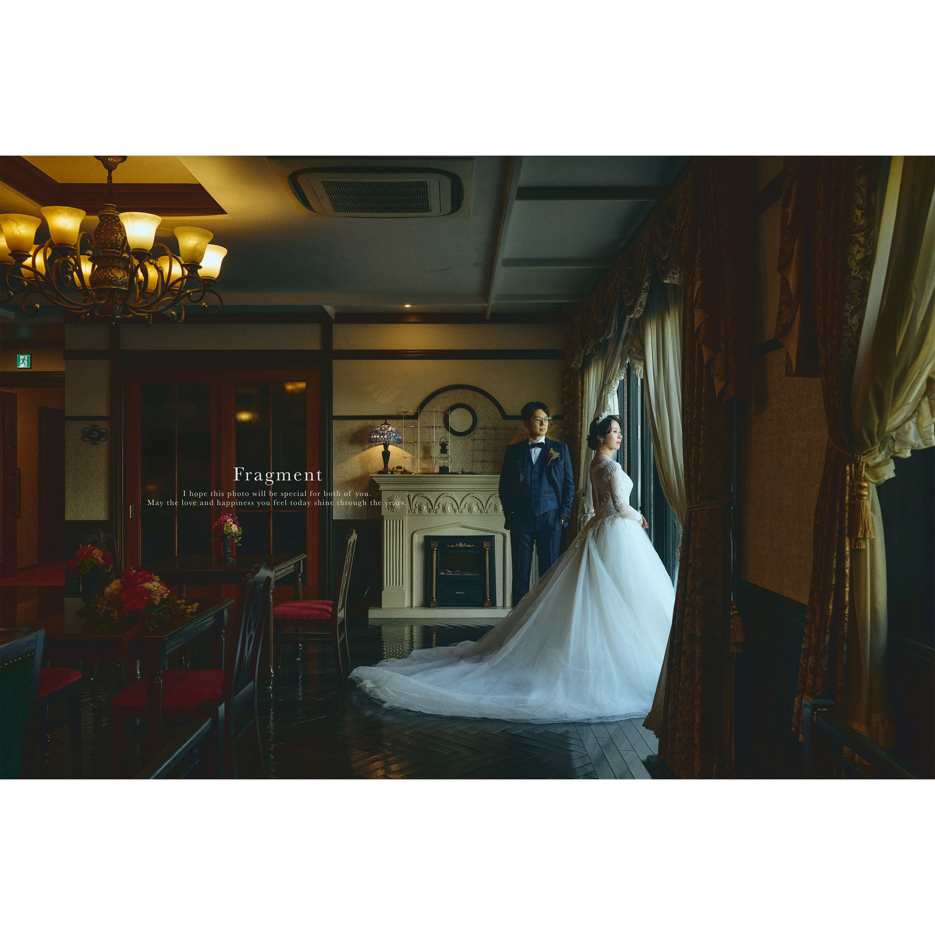 自然光みたいな柔らかい光から、ドラマチックな光まで、おふたりの雰囲気に合わせて調整します。