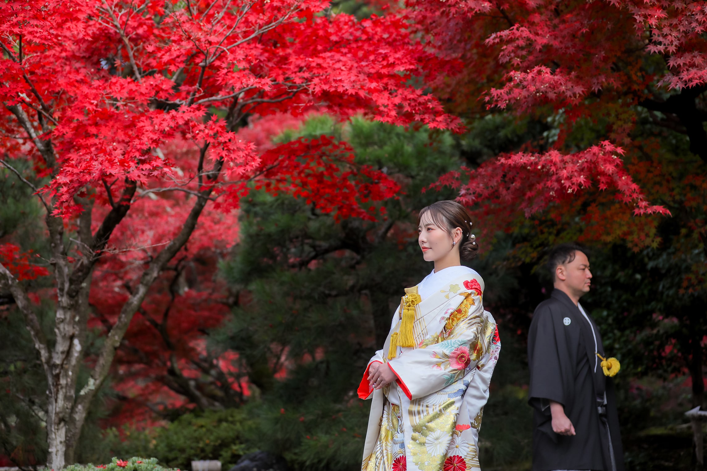 こんにちは!スタジオTVB京都店フォトグラファーの金城です! 毎日暑い日が続きますが、スタジオTVB京都からご案内させて頂いている泉涌寺ロケ、秋の紅葉時期のご案内です。 [京都の静かなお寺で和装前撮りやフォトウェディング] 紅葉の美しい京都で和装前撮りやフォトウェディングをお考えなら、 ぜひ!ウエディングフォトの日記念ブライダルフェア♪に来てみませんか? [京都の秋、紅葉の美しい季節にフォトウェディングや前撮りを] ブライダル専門スタッフが、おふたりの前撮りやフォトウェディングをサポートします!! 撮影のイメージがふくらむ撮影体験や試着体験やスタジオ見学などもご案内♪ [京都で叶える和装前撮りやフォトウェディング] 8/9(土)、10(日)、11(月)の3日間開催!!ぜひお気軽にお越しくださいませ! [秋の京都のお寺でフォトウェディング] これらの写真全ての撮影はフォトグラファー呉 文哲が担当しました。 お二人らしい自然な様子はもちろん、おしゃれな写真もかっこいい写真もお任せください。ギャラリーページもぜひ、ご覧ください! [木漏れ日も綺麗な境内で、お二人らしい一枚] 【 撮影までの流れ 】 〈 洋装 〉ご来店回数 3 回(オンライン相談会の場合は2回) 撮影相談会→ 衣装合わせ (撮影日の2週間〜1ヶ月前頃) → 撮影当日 → 商品の発送 〈 和装 〉ご来店回数 2 回(オンライン相談会の場合は1回) 撮影相談会 → 撮影当日 (衣装選びは撮影当日に行います) → 商品の発送 *衣装合わせ日と撮影日は、撮影相談会がお済みのお客様より順次ご案内となります。 当店専属プランナーがお二人に合ったプランをご提案させていただきますので 一緒に作っていきましょう!イメージなくても全然大丈夫です! お気軽にご相談ください! [京都の紅葉の綺麗な時期にフォトウェディング] 時間がなかなか取れない方、遠方からのお客様も多数、ご来店頂いております。 ♪公式Instagramもチェック♪ スタジオTVB京都店公式 ⇒ @studiotvbkyoto