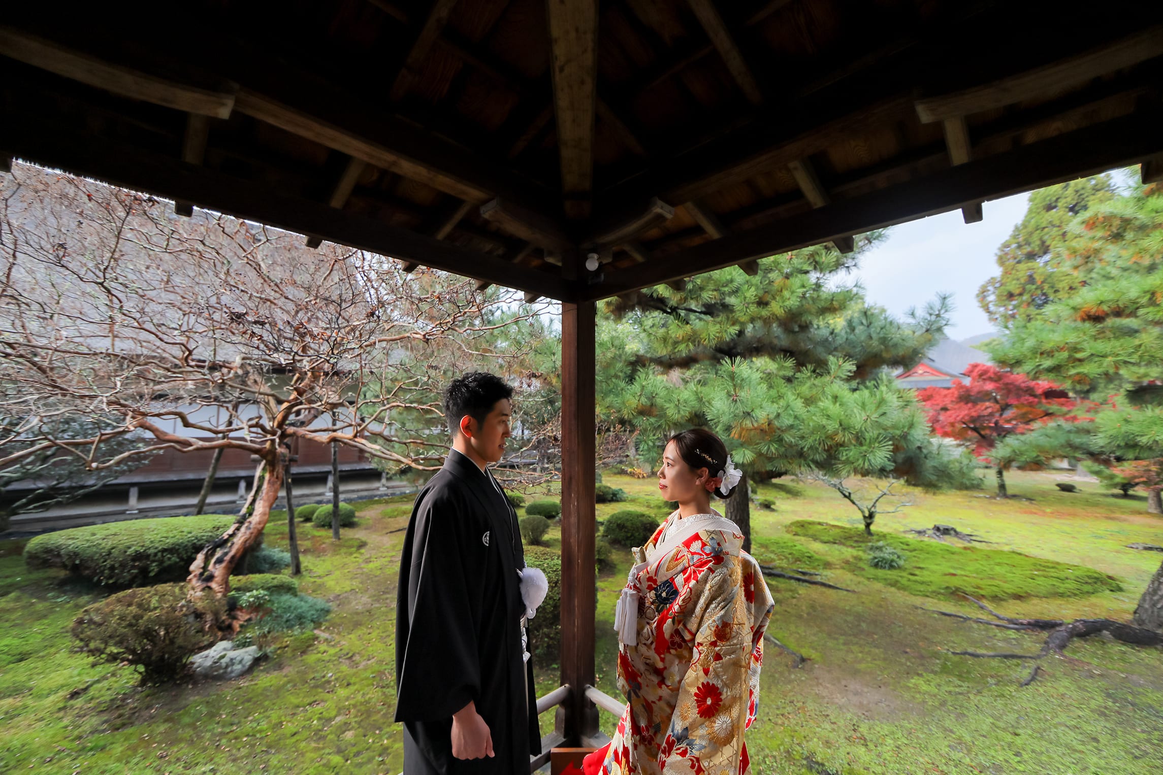 こんにちは、スタジオTVB京都店です! 今回は、晩秋の大覚寺で紅葉と夕日の中でのフォトウェディングをご紹介します。 [京都 和装前撮り フォトウェディング] 紅葉に囲まれて夕日の中で、寄り添うお二人がとても素敵な和装のフォトウェディングです。お二人のご希望やアイディアも教えてください。ブーケを使ったり、自分でフレーミングしてみたり、お二人のご希望をいろいろ教えてくださいね。 [和装前撮り 京都 フォトウェディング] [京都 フォトウェディング 和装] シルエット撮影も番傘を使ってみたり、そのままお二人を撮影してみたりも素敵です。 [京都 フォトウェディング] [和装 フォトウェディング 京都] おしゃれなモノクロ写真も撮影できます。お二人もいかがですか? [京都 フォトウェディング] こちらの撮影をしたカメラマンのギャラリーはこちらから! ヘアメイクさんのギャラリーはこちら! 秋の大覚寺での撮影いかがでしたでしょうか? 春は梅も桜も綺麗です! 撮影しながらも季節感を楽しみたいという方は是非ご相談ください!