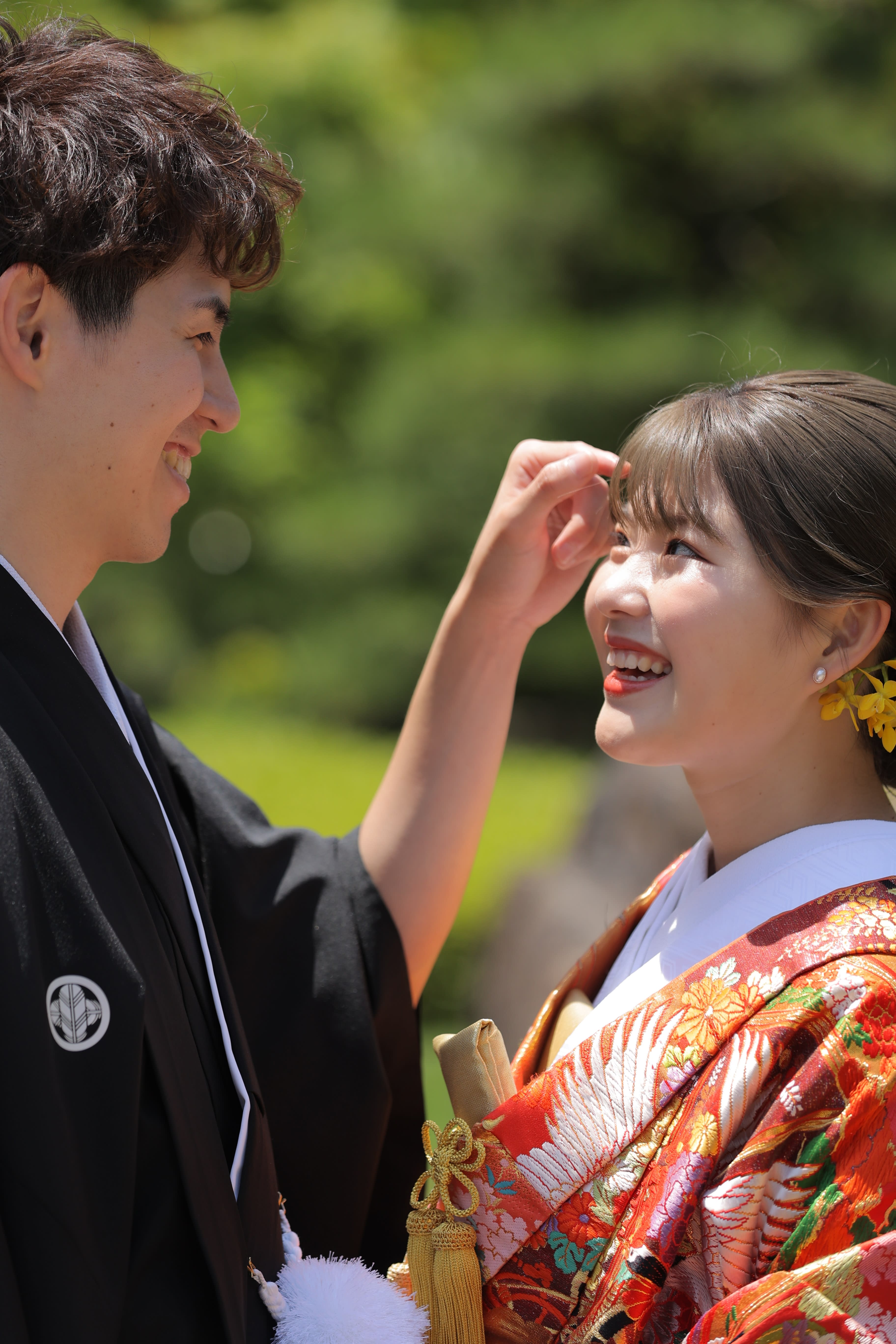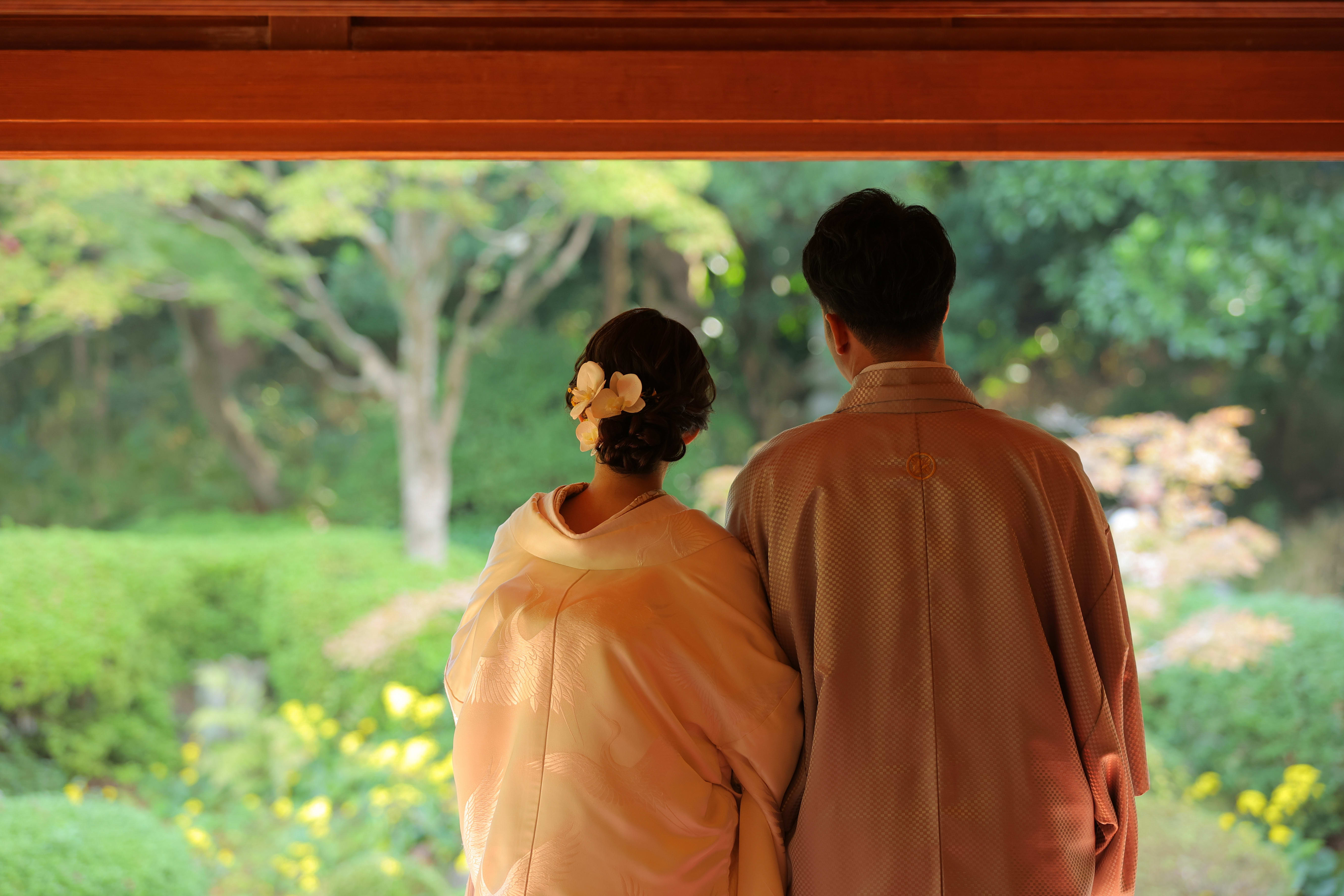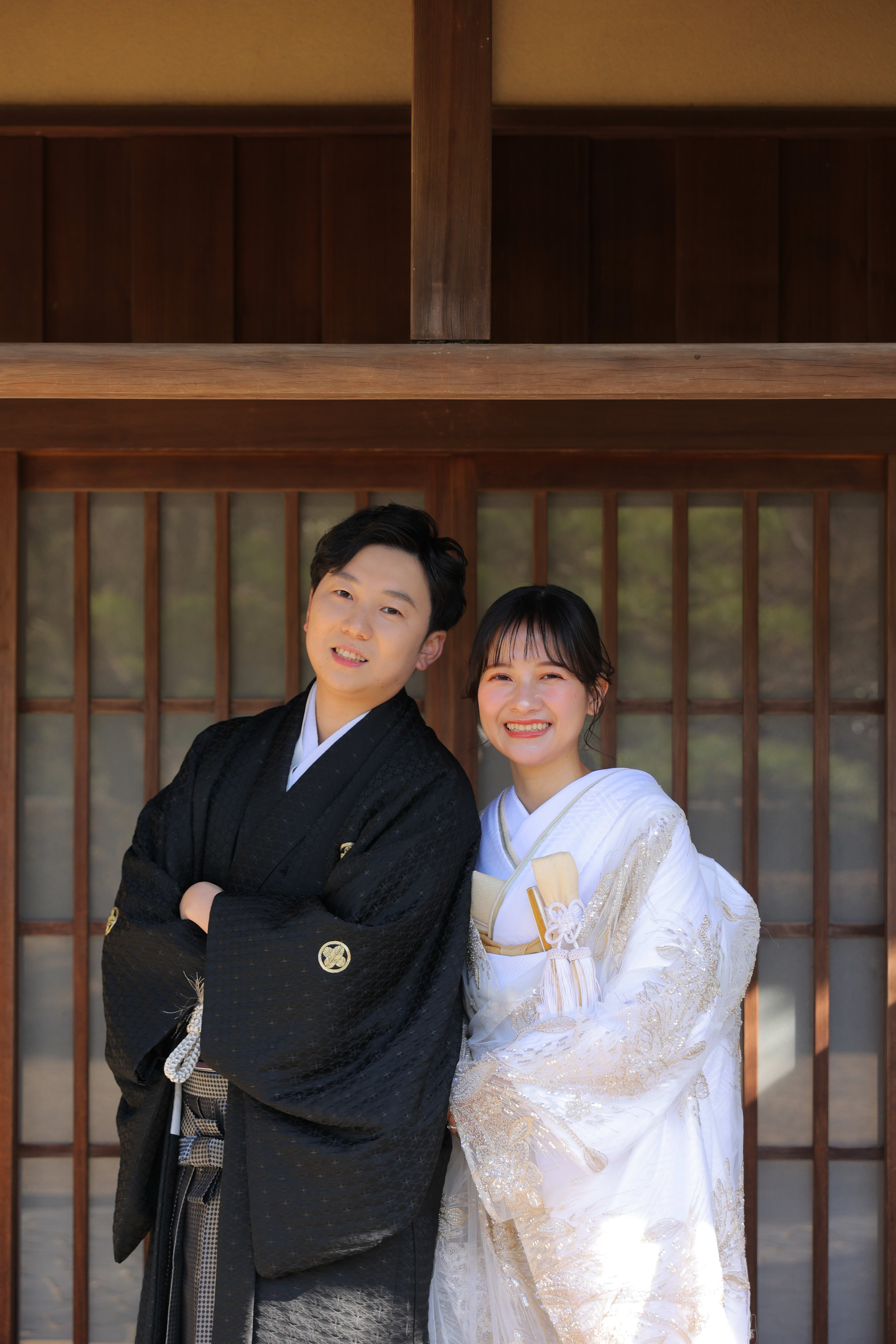 こんにちは!! スタジオANのカメラマン鶴です♪今回は、2つのスタジオでの撮影されたお客様の写真をご紹介します♪[フォーマルなポーズは無地背景できちんと残させていただきます。] [ご新婦様のソロショット♪節目もとてもかわいいご新婦様♪] [縁側で桜を見ながら、お二人仲良くお話しされている様子とてもステキです♪] [おふたり手を重ねて。輝く指輪をきれいに写させていただきます。] [ご新郎様のソロショット。和装姿がとてもお似合いですね。] [木漏れ日降り注ぐ中、藤棚の下で手をつないで♪] [ピンクのお花の咲く木陰に隠れて。おふたりの雰囲気にピッタリですね♪]