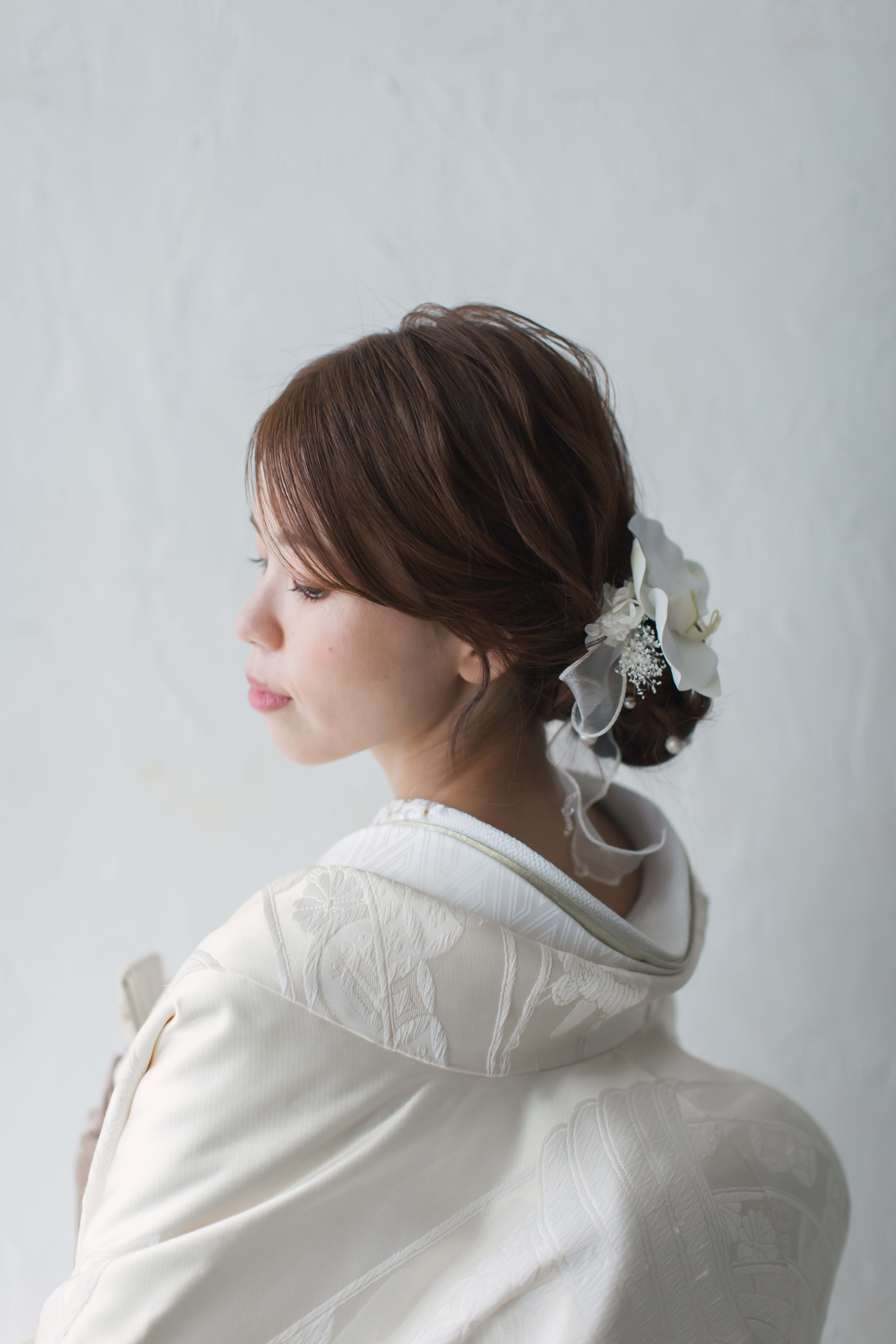 こんにちは☀️ ヘアメイクの村尾です! 今日は先日担当したお客様のヘアスタイルのご紹介です! [5F2A1507 2.JPG] 和装での撮影だったので つるっとしたシニヨンで和装らしいヘアスタイルにしました👘 [5F2A1492 2.JPG] 髪飾りは新婦様がネットで見つけたかわいい髪飾りを真似して 手作りで作ってきてくださいました!とっても器用!! ぜひ参考にしてみてください✨︎