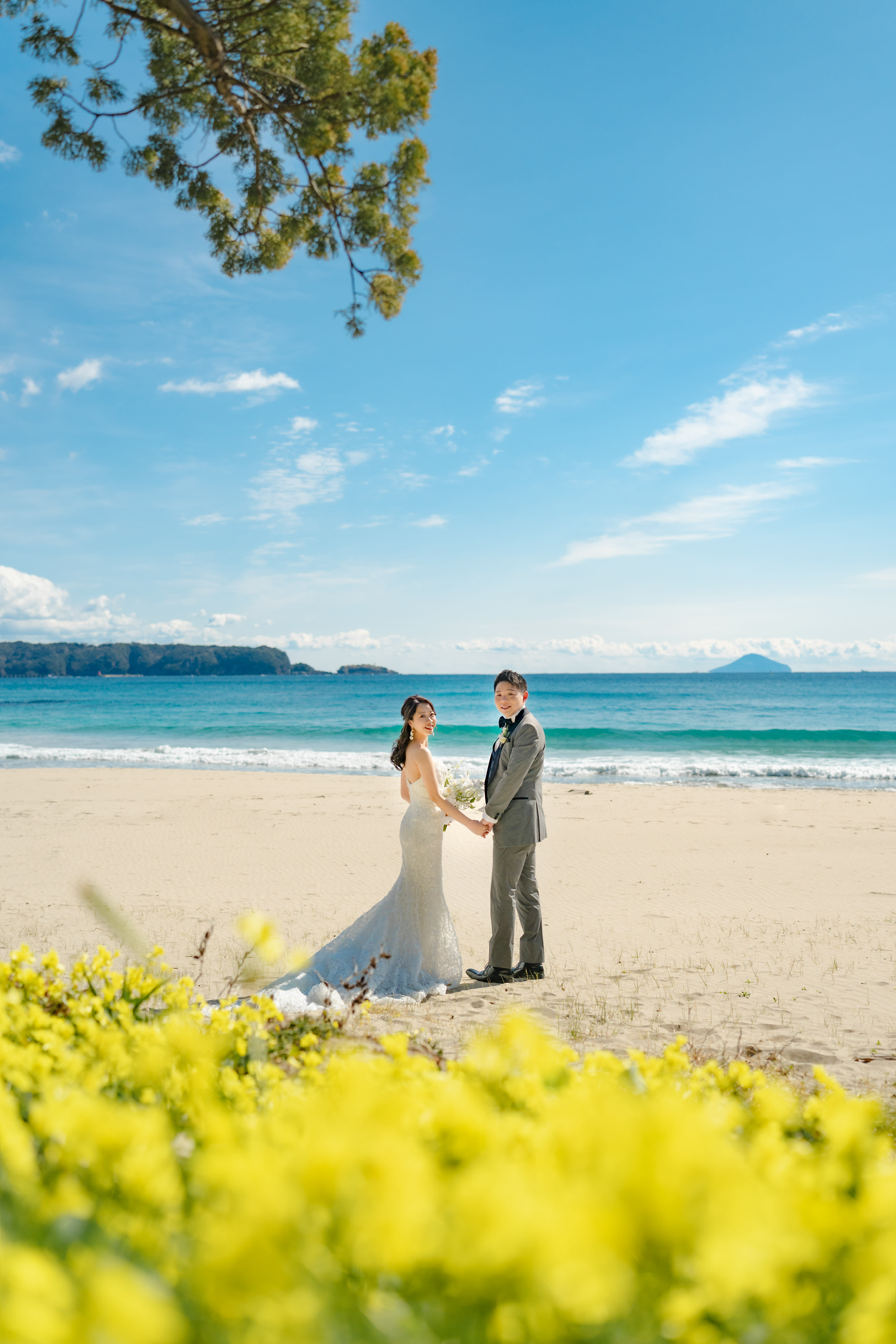 美しいロケーション、城ヶ島で素晴らしいカップルのウェディングフォトを撮影する機会に恵まれました。新郎新婦はまさに美男美女で、お互いに対する優しい思いやりが写真を通じて感じられる素敵なお二人でした。穏やかで落ち着いた雰囲気が印象的なカップルでした。 幸運なことに、撮影当日はいいコンディションでした。夕日が海を染める美しい光景が広がり、風もなくとても穏やかで、まさに写真日和と言える日でした。空は澄み渡り、雲ひとつなく、まるで私たちの撮影を祝福しているかのようでした。 このような素晴らしいロケーションとコンディションの中で撮影できたことは本当に幸せでした。 この特別な一日を写真に収めるお手伝いができたことに心から感謝します。お二人のこれからの未来が幸せで満ち溢れますように。 [No-40.jpg][No-6.jpg][No-16.jpg][No-4.jpg][No-8.jpg][No-26.jpg]
