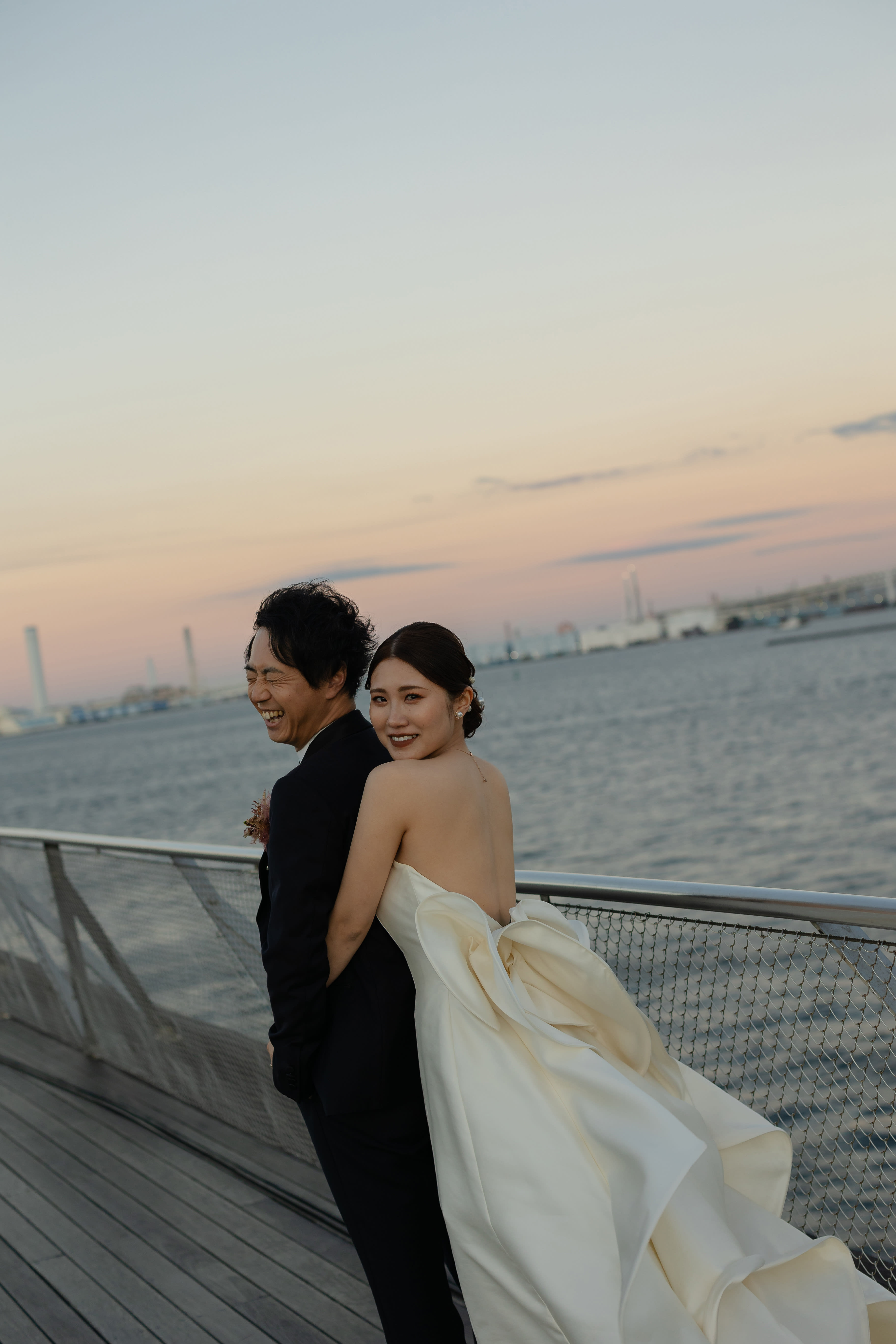 みなさんこんにちはスタジオアクア横浜店フォトグラファーの下中です! 今回は横浜・メモリアルパークで撮影をしたのでご紹介します! 広々とした場所なので、歩いたり座ったりとシンプルな動きの中にもお二人らしさが出ていてとても素敵でした^^色々なシーンも残すことができました [328794-83.jpg][328794-100.jpg][328794-107.jpg][328794-129.jpg] 見つめ合うシーンでは、新婦様の笑顔がとっても素敵でした♡ [328794-139.jpg] モノクロでも撮影しました!カラーとはまた違ったかっこよさがありますね^^ [328794-158.jpg][328794-162.jpg] 角度を変えても撮影しました。こちらの角度から撮ったお写真も素敵ですね! [328794-168.jpg][328794-182.jpg][328794-212.jpg] 最後はレインボーの観覧車を背景に。締めにふさわしい華やかな一枚になりました^^ 【 撮影までの流れ 】 〈 洋装 〉ご来店回数 3 回(オンライン相談会の場合は2回) 撮影相談会→ 衣装合わせ (撮影日の2週間~1ヶ月前頃)→ 撮影当日 → 商品の発送 〈 和装 〉ご来店回数 2 回(オンライン相談会の場合は1回) 撮影相談会 → 撮影当日 (衣装選びは撮影当日に行います) → 商品の発送 *衣装合わせ日と撮影日は、撮影相談会がお済みのお客様より順次ご案内となります。 当店専属プランナーがおふたりに合ったプランをご提案させていただきますので一緒に作っていきましょう! 是非一度ご相談会へご予約いただき、ご希望の内容をお伺いできればと思います^^