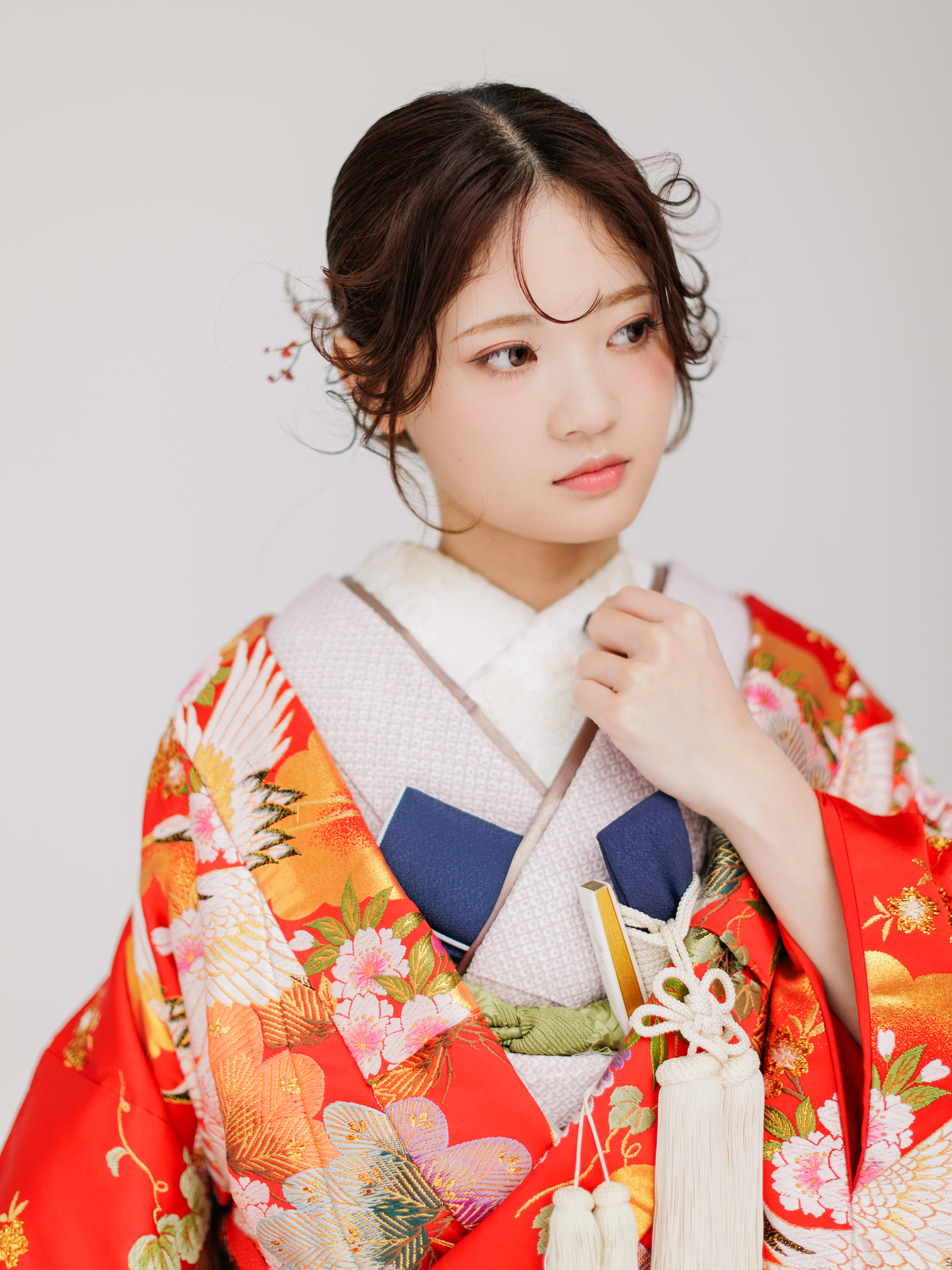 皆様こんにちは。スタジオTVB奈良店でございます。 今回は、日本の花嫁衣装の代表格である「白無垢(しろむく)」と「色打掛(いろうちか け)」に込められた、素敵な意味と和装コーディネートをご紹介します。 「白無垢」 白無垢は、頭のてっぺんから足元まで、全てを白で統一した最も格式の高い衣装です。 白は「何色にも染まっていない」色。これは、「嫁ぎ先の家風に染まります」「新しい人生 をゼロから始めます」という、花嫁の強い決意と純粋な気持ちを象徴しています。 [10_wu00179..JPG][9_wu00284..jpg] 日本の伝統的な婚礼衣装である白無垢や色打掛をより美しく見せるのが、頭を飾る小物で す。特に「綿帽子」と「角隠し」は、花嫁の特別な日への願いが込められた、大切なアイテ ムです。 厳かな神聖さを象徴する「綿帽子」(わたぼうし) 綿帽子は、すっぽりと頭から顔の周りを覆う、ふっくらとした白い布です。 「挙式が終わるまで、新郎以外には顔を見せない」とういう深い意味があります。 これは、奥ゆかしい大和撫子の象徴であり、花嫁の神聖さ、神秘性を際立たせる意味が込め られています。 清楚で可憐、守られているような柔らかい印象になります。 [わたぼうし.jpg][綿帽子2.jpg] 「色打掛」 挙式で白無垢を着た後、披露宴でガラッと雰囲気を変える「お色直し」として選ばれること が多いのが色打掛です。スタジオ撮影でも、白無垢から色打掛のお色直し、2着の撮影が可 能でございます。 赤や金、緑など、鮮やかな色彩と豪華な刺繍が特徴で、鶴や松竹梅といった縁起の良い吉祥 文様が描かれています。この華やかさは、「新しい家の一員となり、華やかに咲く」こと、 そして「慶び」を表現しています。魔除けの意味を持つ色も多く、お二人の門出をしっかり 守ってくれます。 [11_iu01104.....jpg][10_iu01626.jpg] 妻としての覚悟を表す「角隠し」(つのかくし) 角隠しは、日本髪を結った上から、帯状の布を巻くようにして被るものです。 「角を隠して、嫁ぎ先に従順になる」 これは、女性が持つとされる「怒り」や「わがまま」といった『角』を隠し、夫や嫁ぎ先の 言うことに従う、柔和で貞淑な妻になりますという決意を表しています。 白無垢、色打掛、どちらにも合わせることができます。 凛として格調高く、大人の女性らしい品格ある印象になります。 [角隠し_べっ甲4.jpg] 白無垢や色打掛を着る際に、胸元に差し込む小物にも、深い意味が込められています。 懐剣(かいけん) 武家の女性が護身用に持っていた短剣で、「邪悪なものを寄せ付けない」「自分の身は自分 で守る」「一度嫁いだら帰らない」 そんな意味が込められているとされ、妻となる覚悟やお守り的な役割です。 [コーディネート1.JPG][コーディネート2.JPG][コーディネート3.JPG] 筥迫(はこせこ) 武家の女性が、身だしなみに使う白粉や紅筆などを入れて、胸元に差し込んでいた箱状のも のです。 今でいう、化粧ポーチのようなものになります。 末広(すえひろ) 「末広がりの幸せが続きますように」 末広という文字通り、そんな意味が込められています。 [7.jpeg] どちらの衣装も、何百年もの歴史の中で受け継がれてきた、想いがたっぷり詰まった特別な ものです。小物の一つ一つに込められた意味を知ると、和装選びがもっと楽しく、深いもの になります^^ それぞれの特徴を比較して、ぴったりの衣装が見つかるようお手伝いさせていただきます!
