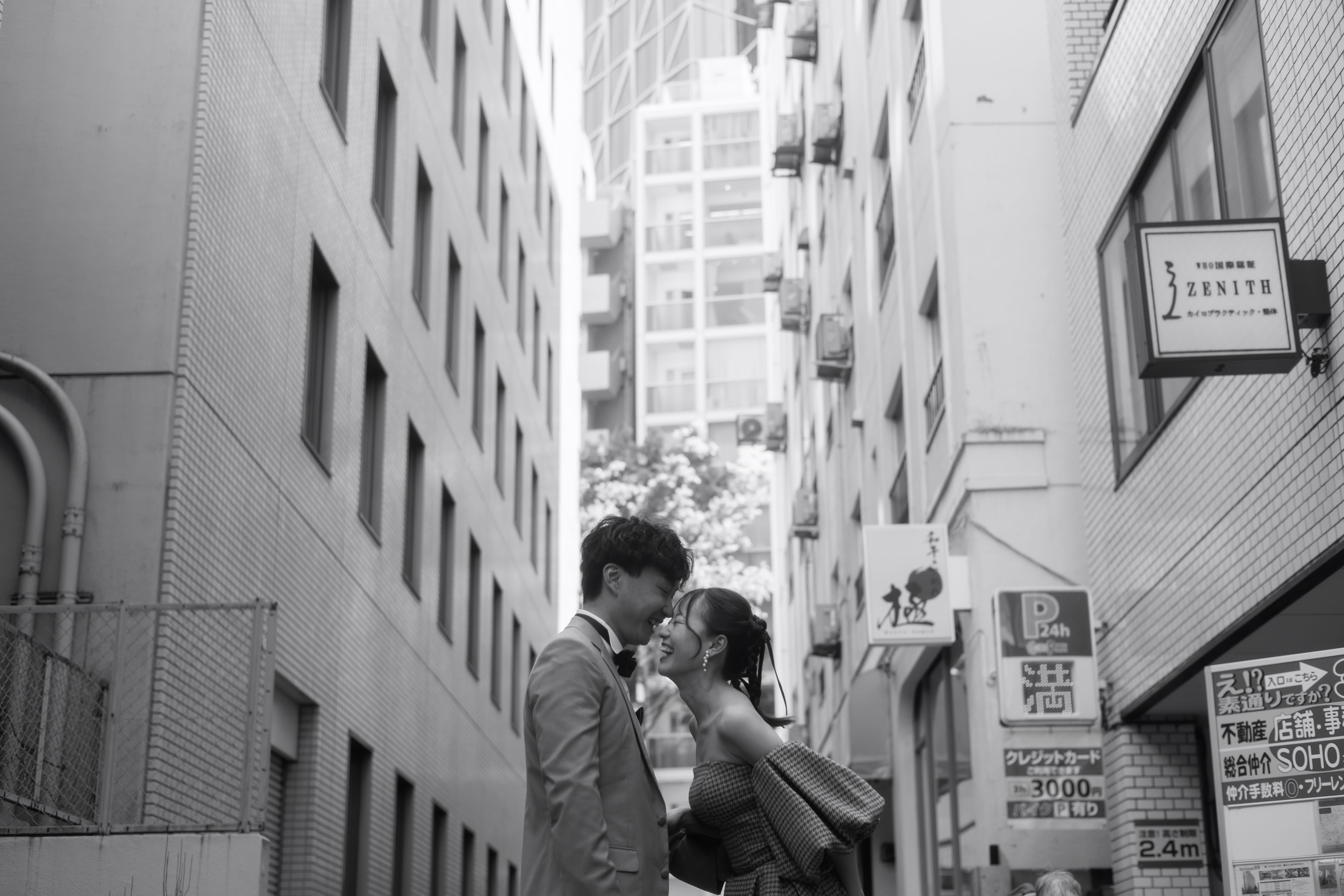 こんにちは!表参道渋谷店の三河 梨々華です。 今回は、渋谷の街中で撮影したカジュアルなウェディングフォトの魅力についてお伝えします! お二人の私服は、お揃いコーデで統一感がありながら、個々のスタイルもさりげなく表現されています。特に新婦様の私服にベールを合わせたスタイルは、カジュアルさの中にも特別感を演出しており、とても可愛らしかったです。普段のカジュアルな装いにベールをプラスするだけで、こんなにも印象が変わります! 撮影は、渋谷の賑やかな街中で行いました。お二人らしいナチュラルで素敵な写真になりました。 カジュアルな私服撮影だからこそ、より二人らしさが引き立ち、見る人々にも親しみやすさを感じてもらえます。私服でのウェディングフォトは、特別な一日をより自分たちらしく楽しむための素敵な選択肢です。 是非、私服フォトも記念のお写真に残しましょう! [347589-418.jpg] [347589-436.jpg][347589-487.jpg]