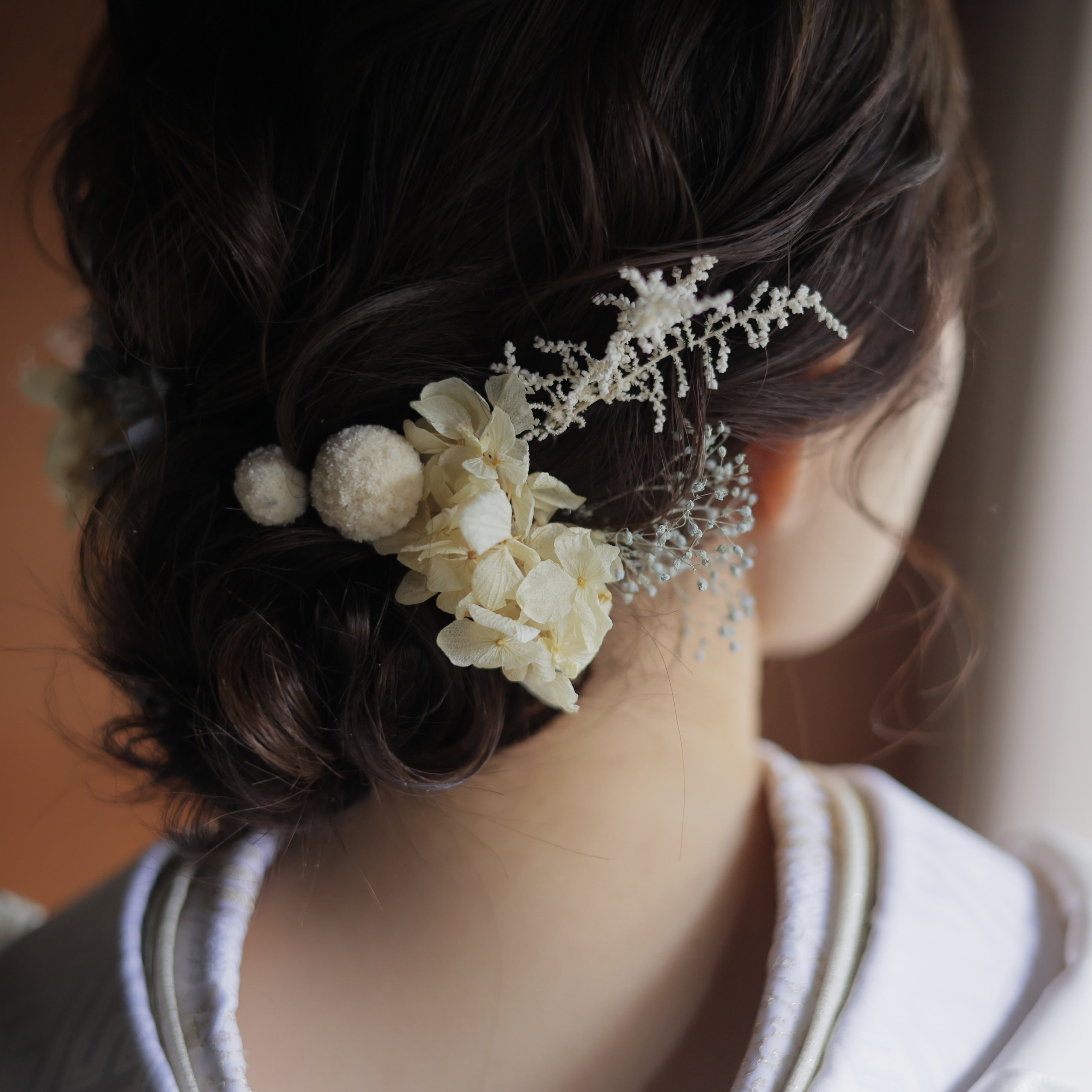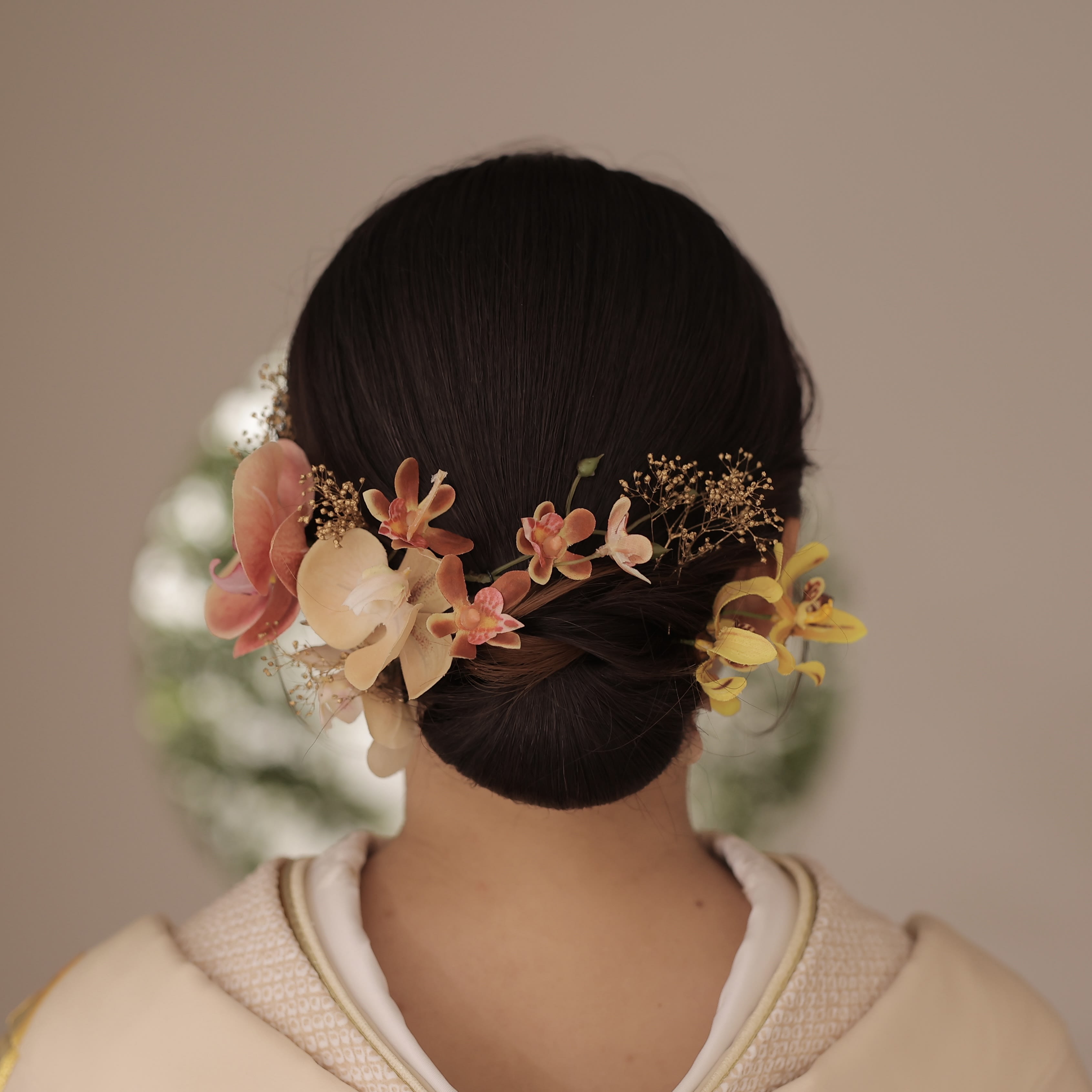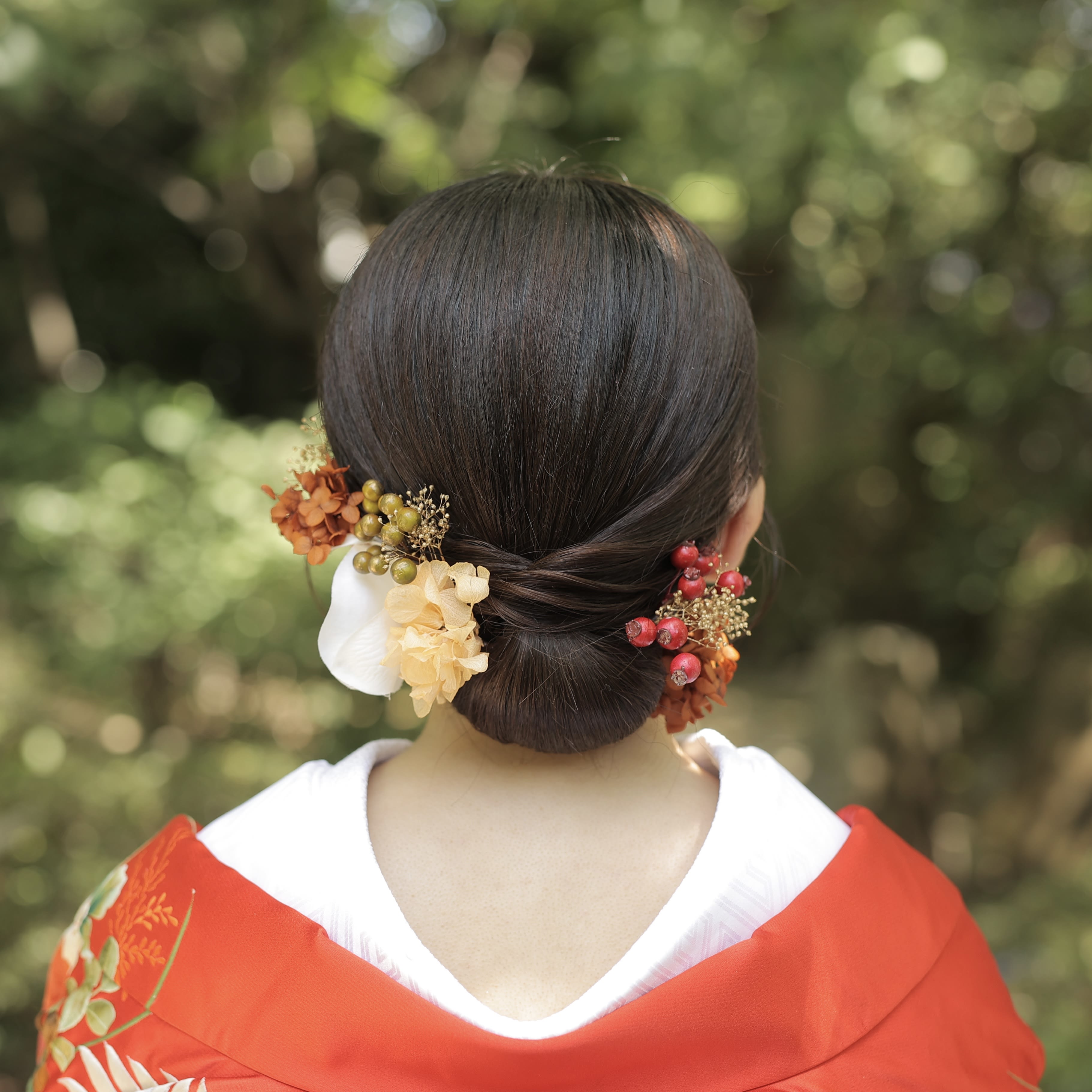 皆様こんにちは^^ ヘアメイクの村上です! 今日は洋装から和装へのヘアチェンジをご紹介します♪ まずは洋装から [3B7A5052.jpeg][3B7A5050.jpeg][3B7A5060.jpeg] ゆるっと崩したニュアンスヘア・:*+. 髪飾りもお花や葉っぱを使ってナチュラルに! 続いて和装へスタイルチェンジ! [3B7A5616.jpeg][3B7A5626.jpeg][3B7A5620.jpeg] つるっとした面スタイル! 色打掛に合わせて花飾りも豪華に・:*+. この新婦様は鎖骨あたりの髪の長さでしたがアレンジの幅もたくさんあります^^ 自分の髪の長さでどんなヘアスタイルができるか不安な方もぜひ参考にしていただけたら嬉しいです♪ 気になるメイク、ヘアスタイルありましたらお気軽にヘアメイクスタッフへお声掛けください!