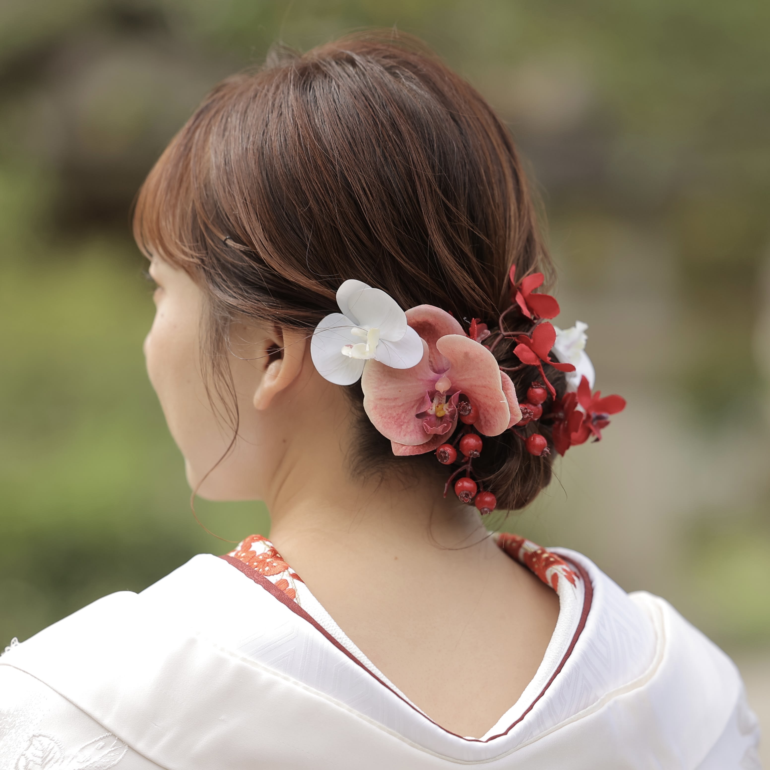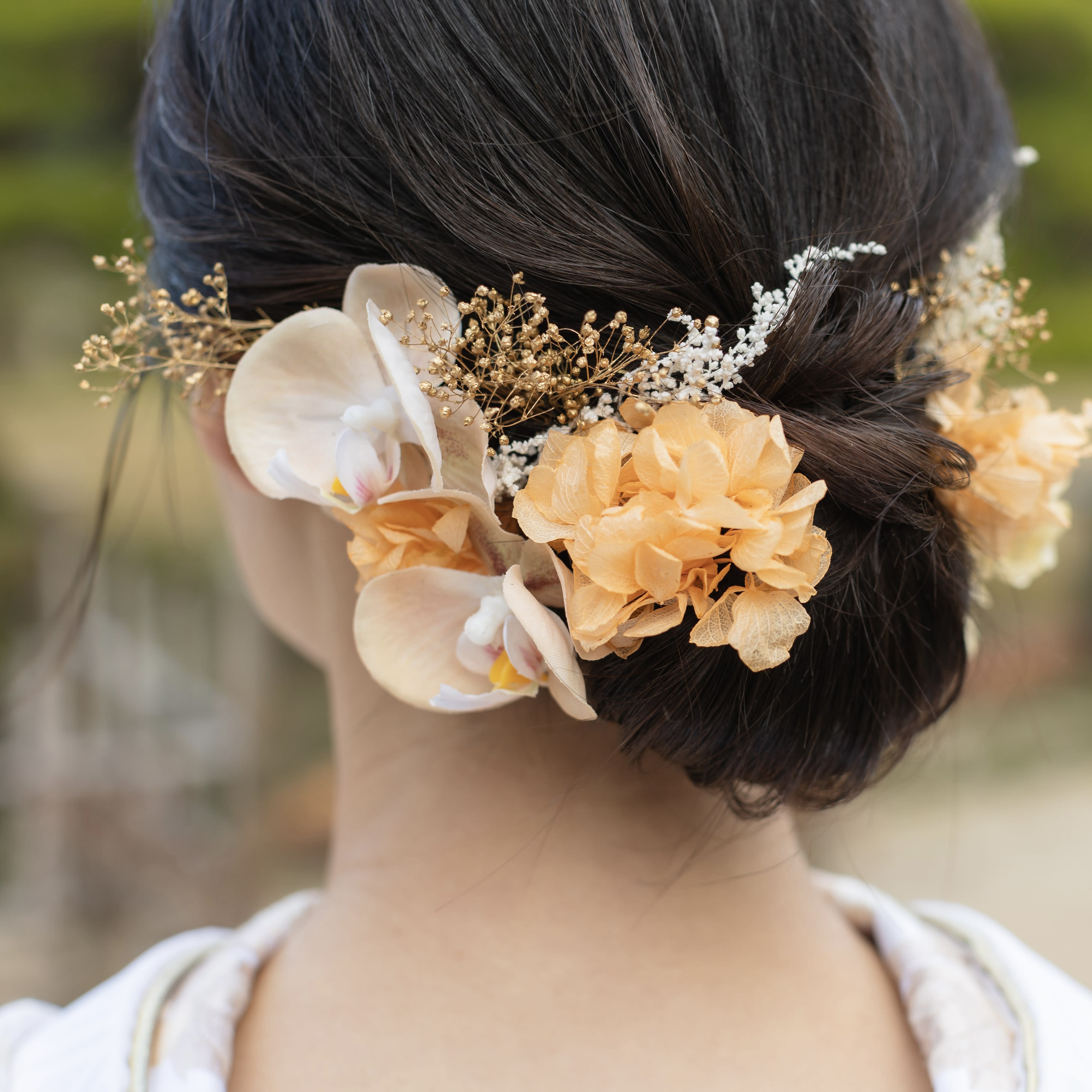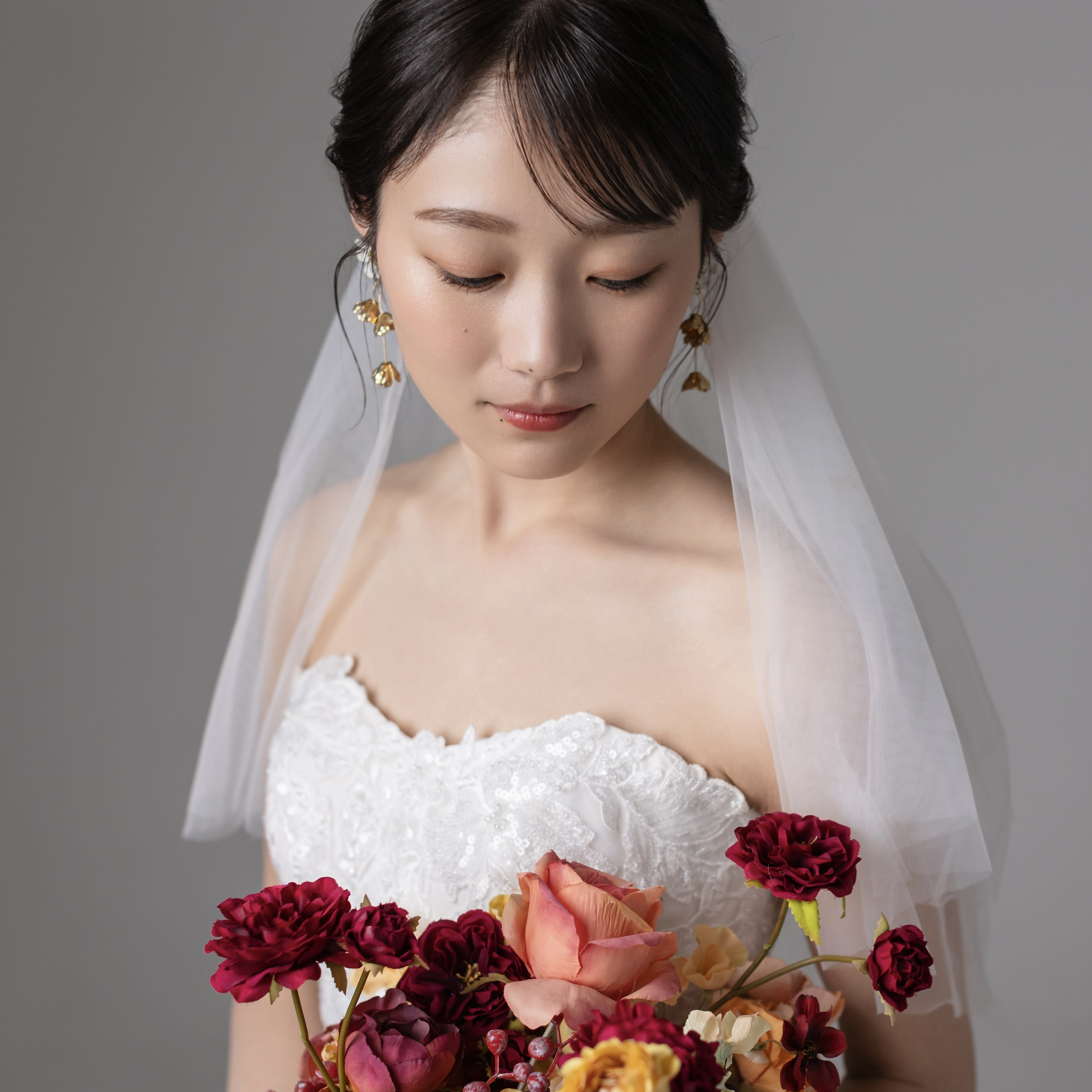 皆様こんにちは^^ ヘアメイクの村上です! 今日は洋装から和装へのヘアチェンジをご紹介します♪ まずは洋装から [3B7A5052.jpeg][3B7A5050.jpeg][3B7A5060.jpeg] ゆるっと崩したニュアンスヘア・:*+. 髪飾りもお花や葉っぱを使ってナチュラルに! 続いて和装へスタイルチェンジ! [3B7A5616.jpeg][3B7A5626.jpeg][3B7A5620.jpeg] つるっとした面スタイル! 色打掛に合わせて花飾りも豪華に・:*+. この新婦様は鎖骨あたりの髪の長さでしたがアレンジの幅もたくさんあります^^ 自分の髪の長さでどんなヘアスタイルができるか不安な方もぜひ参考にしていただけたら嬉しいです♪ 気になるメイク、ヘアスタイルありましたらお気軽にヘアメイクスタッフへお声掛けください!